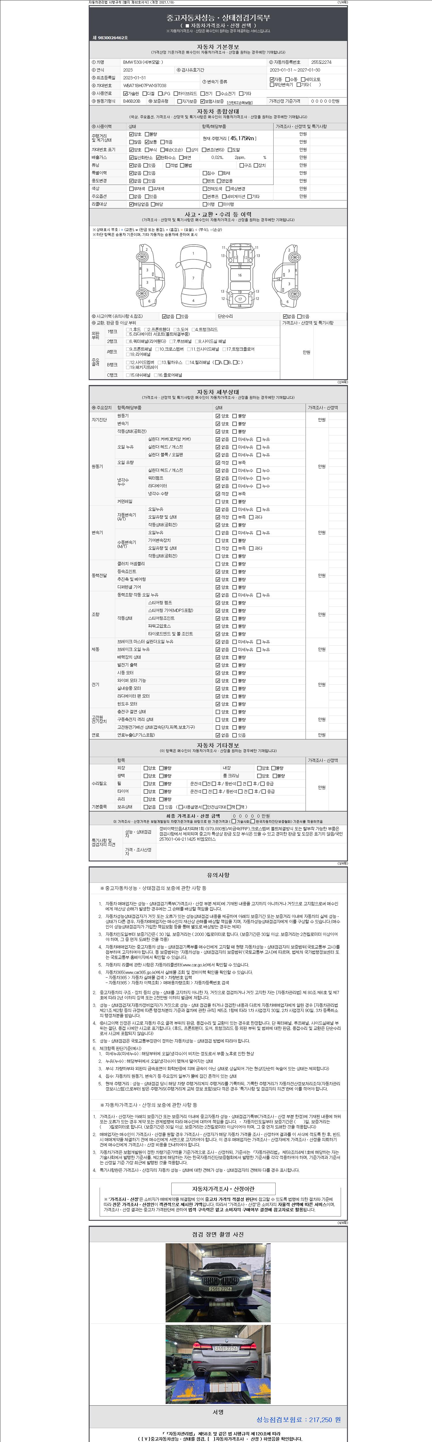 -중고자동차 매매업자를 통해 차량을 구입하실 경우 반드시 "중고자동차 성능, 상태점검 기록부"를 교뷰 받으셔야 하며, 매매업자는 반드시 의무 교부 하여야 압니다.