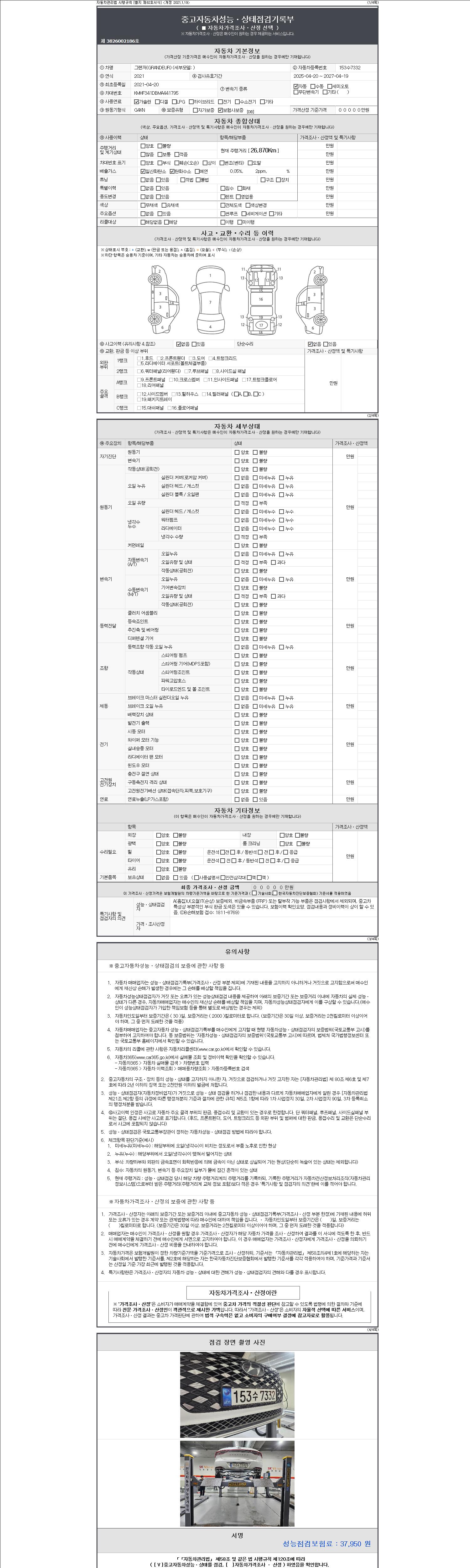 2. 차량 등록증이나 성능점검지 등을 상담자에게 요청및 확인하시고 사전에 미리 점검 하시기를 권유드립니다.