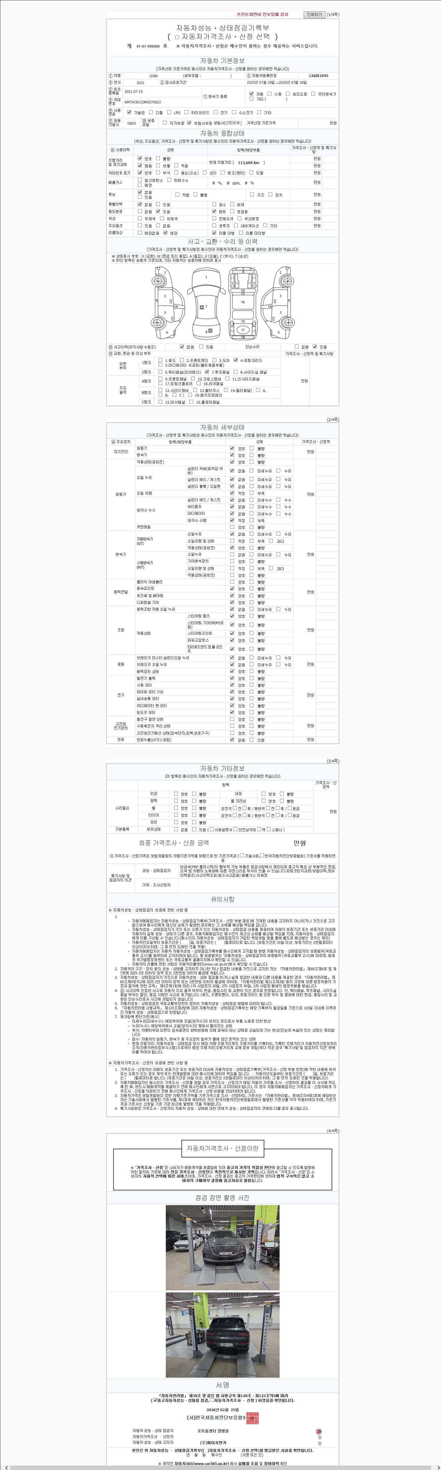 | 주행거리 | 113,604 km | 차량번호 | 126하1045 |