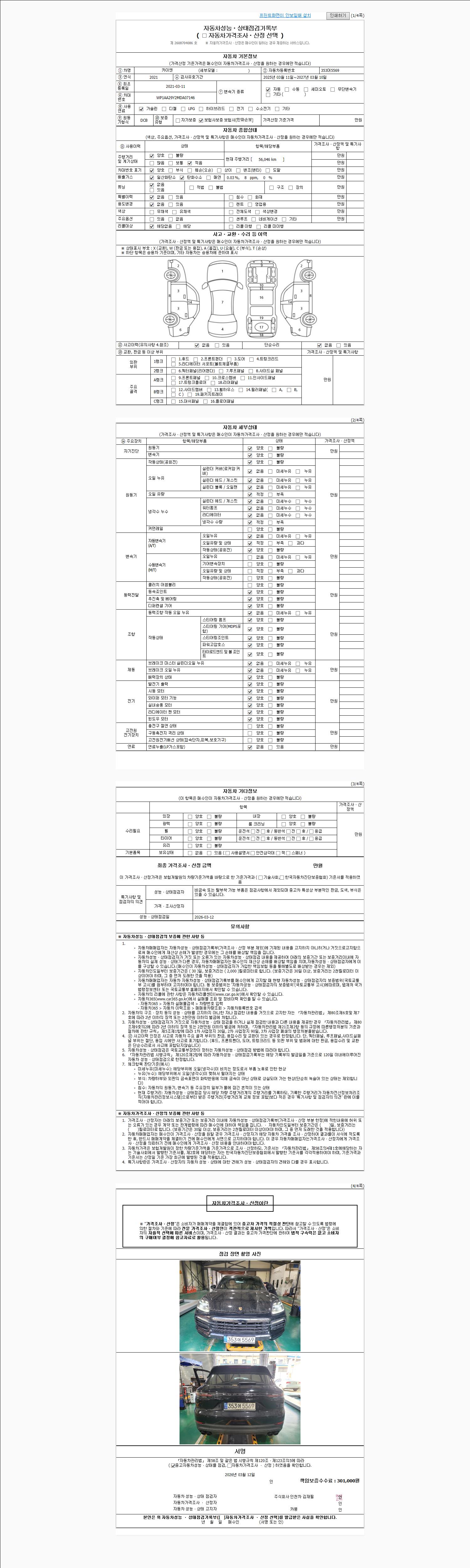 | 사고유무 | 성능기록부 참조 | 제시번호 | 제 2026012721 호 |