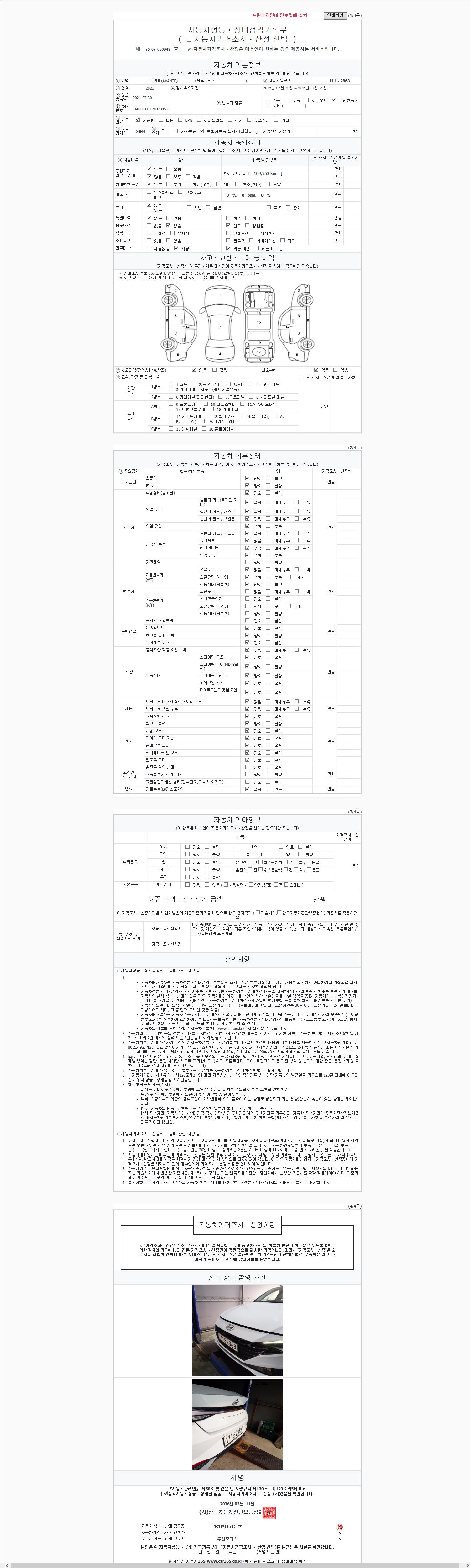 2. 차량 등록증이나 성능점검지 등을 상담자에게 요청및 확인하시고 사전에 미리 점검 하시기를 권유드립니다.