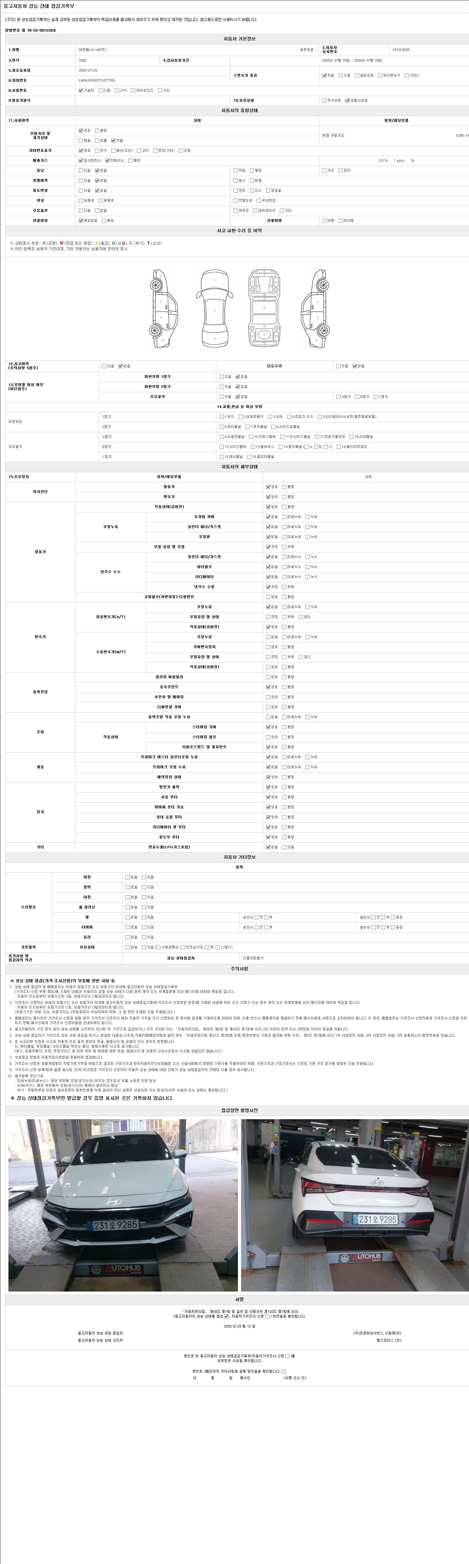 2. 차량 등록증이나 성능점검지 등을 상담자에게 요청및 확인하시고 사전에 미리 점검 하시기를 권유드립니다.