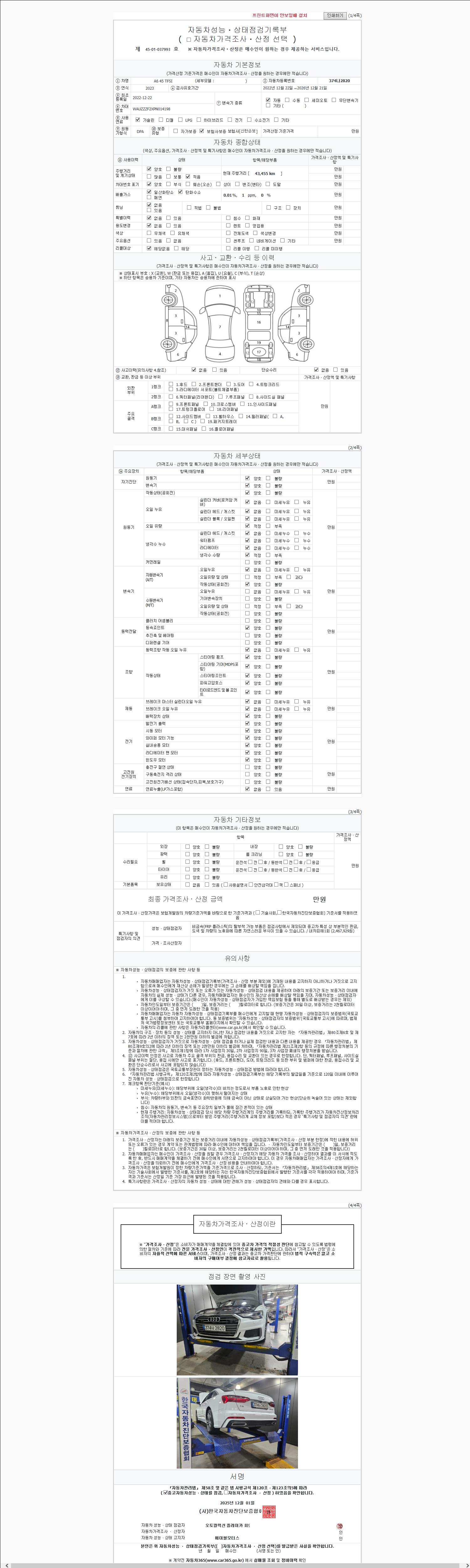 오토|휘발유|2022년 12월|43,455 km 374나2820| cc|미선택 |