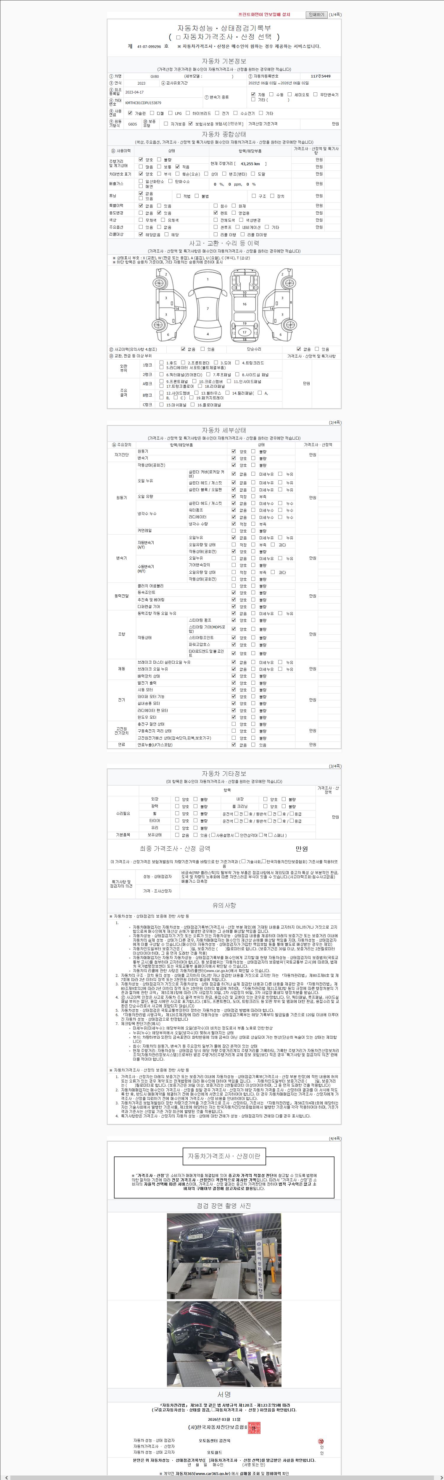 2. 차량 등록증이나 성능점검지 등을 상담자에게 요청및 확인하시고 사전에 미리 점검 하시기를 권유드립니다.