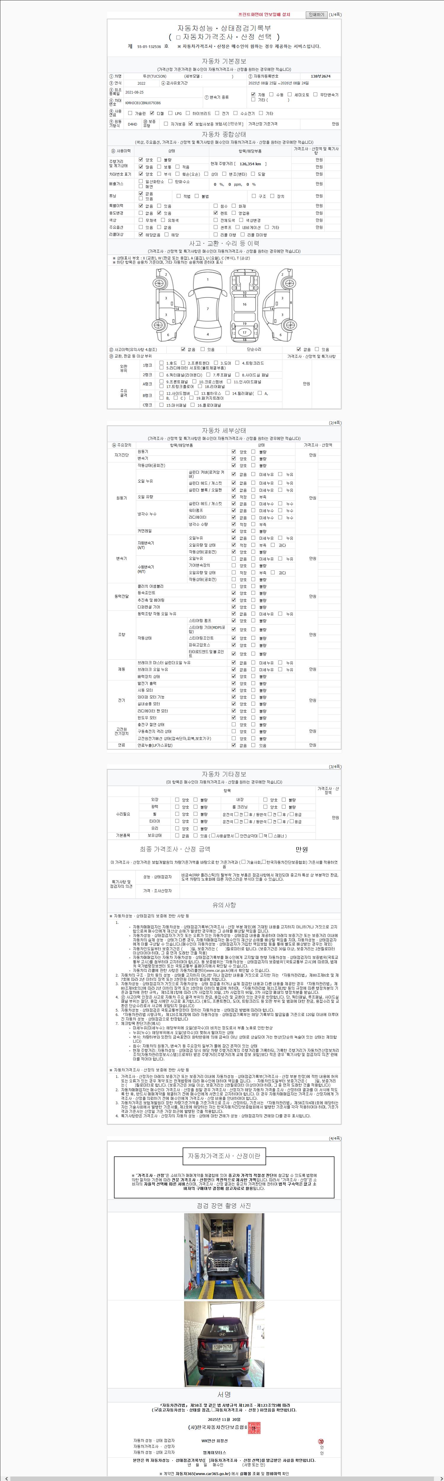 2. 차량 등록증이나 성능점검지 등을 상담자에게 요청및 확인하시고 사전에 미리 점검 하시기를 권유드립니다.