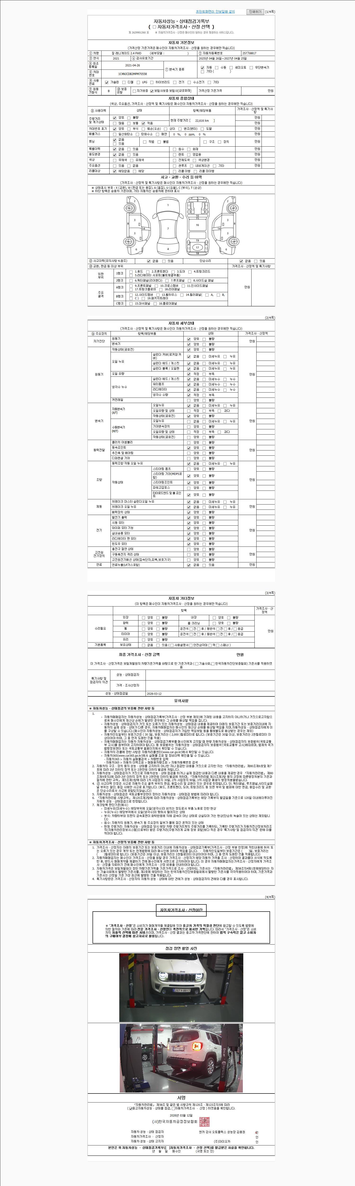 2. 차량 등록증이나 성능점검지 등을 상담자에게 요청및 확인하시고 사전에 미리 점검 하시기를 권유드립니다.