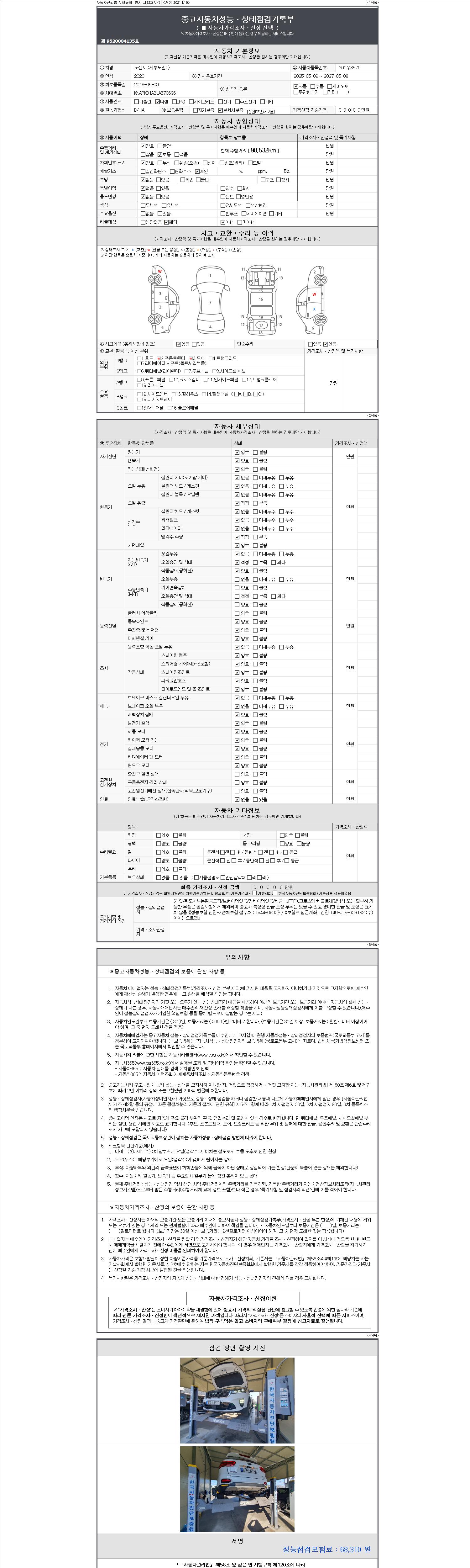 -중고자동차 매매업자를 통해 차량을 구입하실 경우 반드시 "중고자동차 성능, 상태점검 기록부"를 교뷰 받으셔야 하며, 매매업자는 반드시 의무 교부 하여야 압니다.