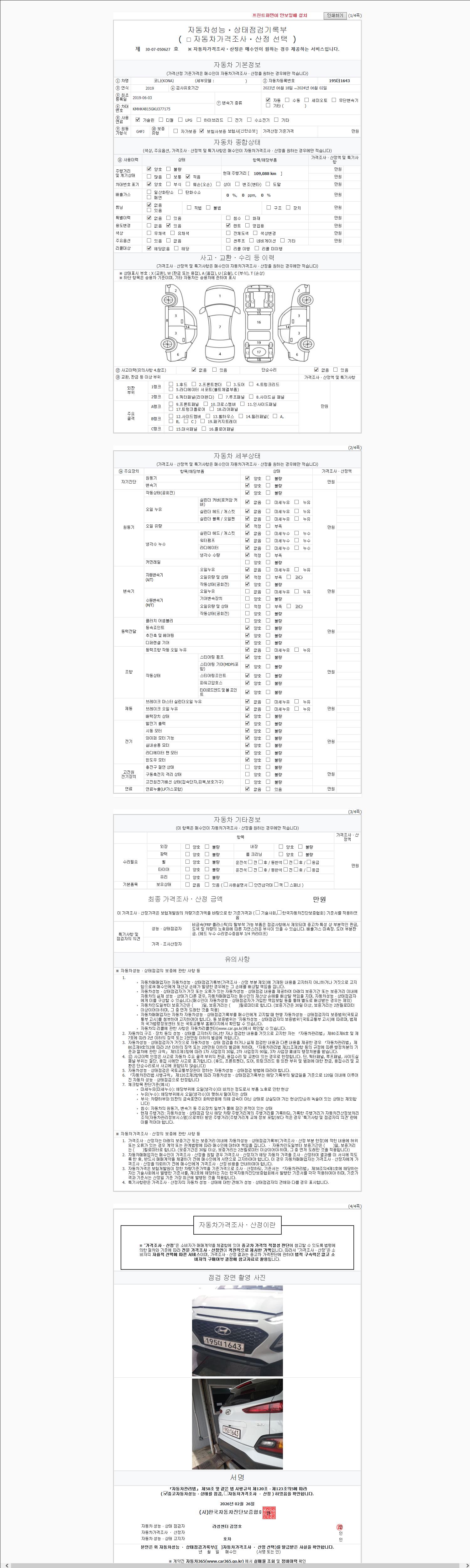 2. 차량 등록증이나 성능점검지 등을 상담자에게 요청및 확인하시고 사전에 미리 점검 하시기를 권유드립니다.
