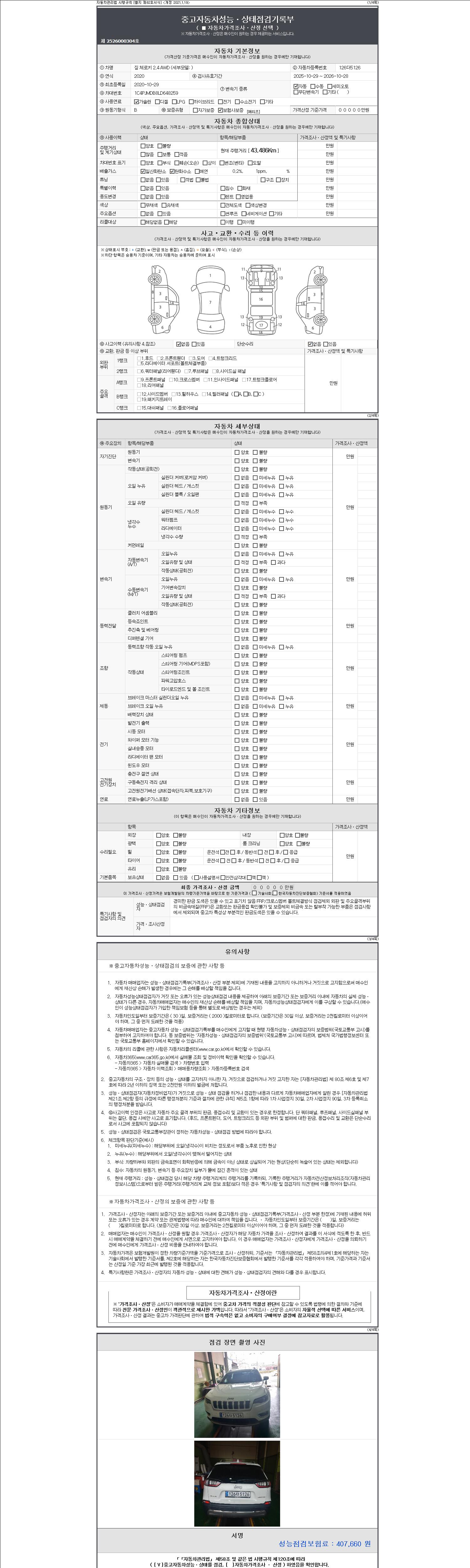 2. 차량 등록증이나 성능점검지 등을 상담자에게 요청및 확인하시고 사전에 미리 점검 하시기를 권유드립니다.