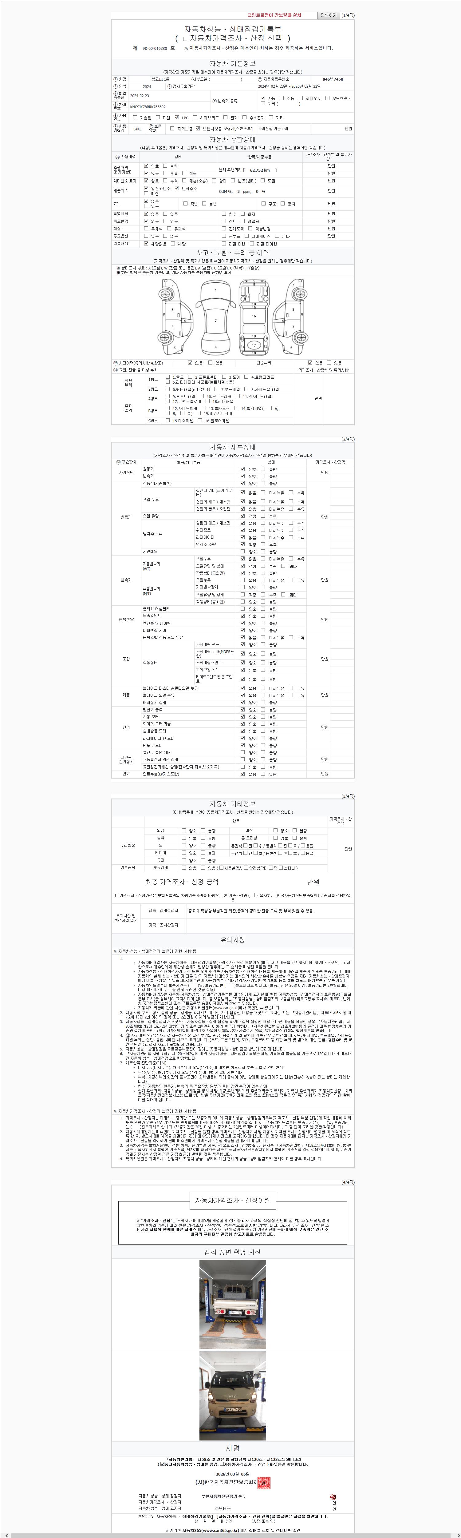 | 사고유무 | 성능기록부 참조 | 제시번호 | 제 2026040604 호 |