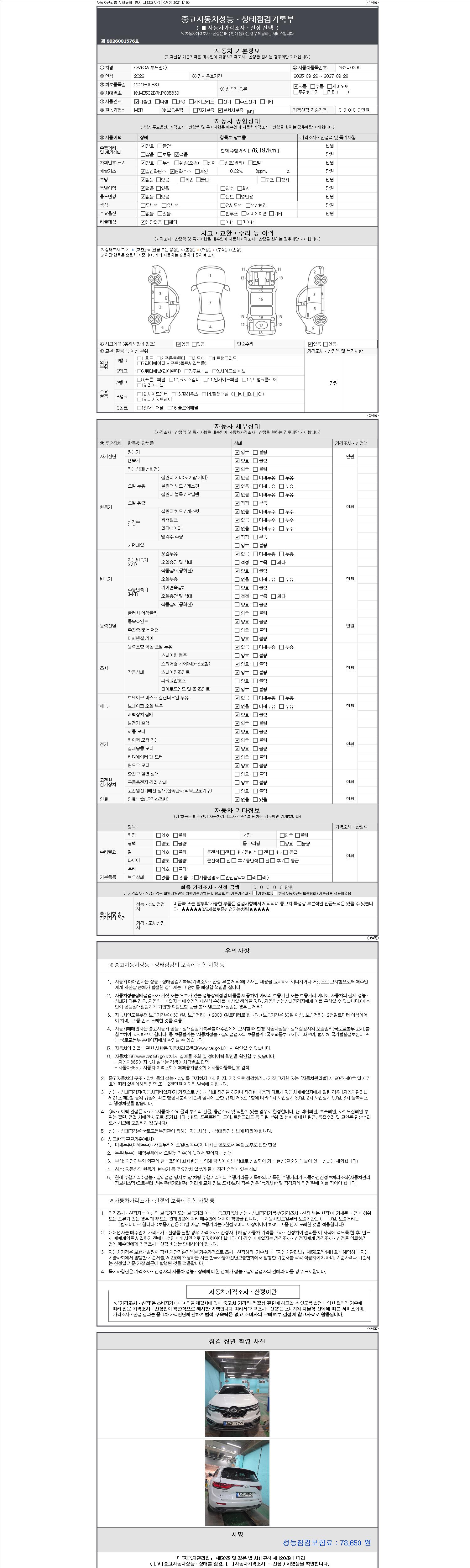 2. 차량 등록증이나 성능점검지 등을 상담자에게 요청및 확인하시고 사전에 미리 점검 하시기를 권유드립니다.