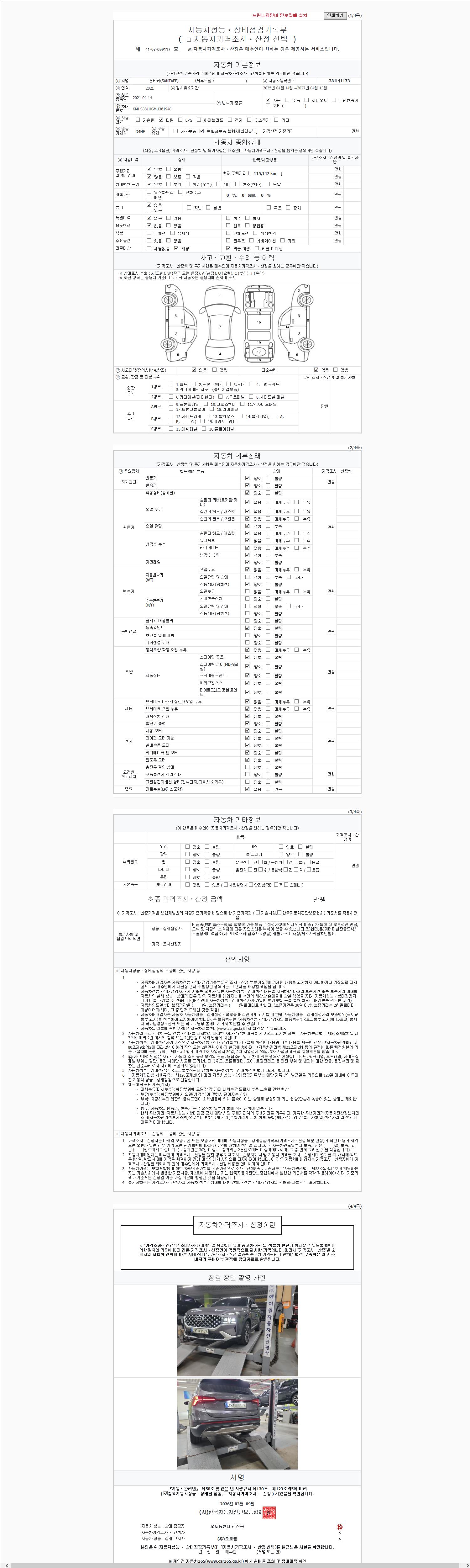 2. 차량 등록증이나 성능점검지 등을 상담자에게 요청및 확인하시고 사전에 미리 점검 하시기를 권유드립니다.