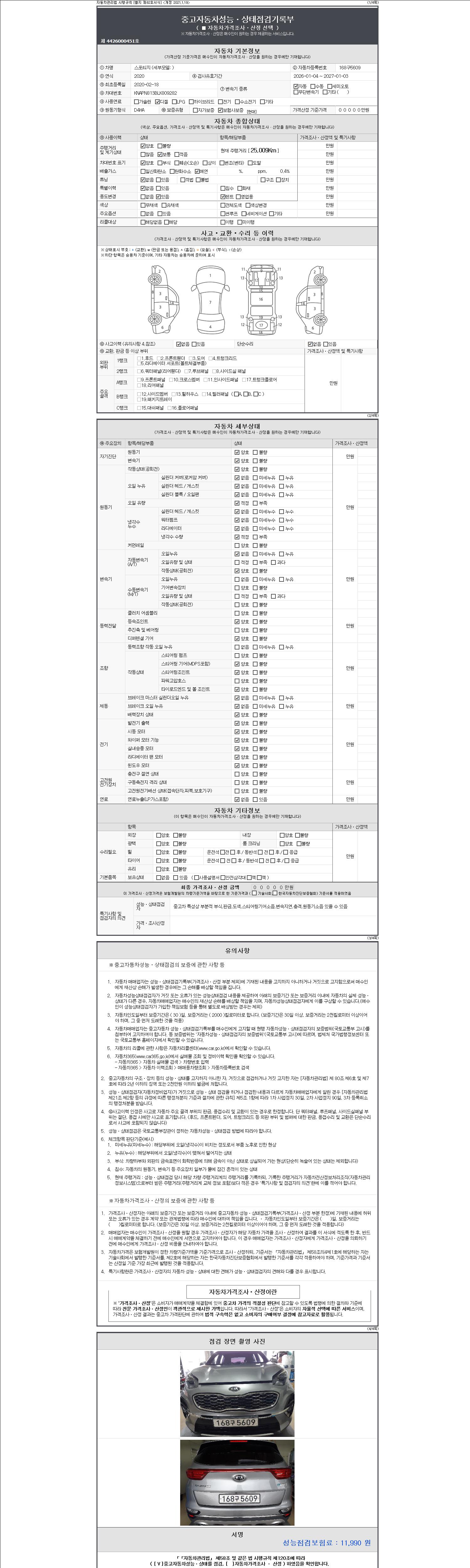 -중고자동차 매매업자를 통해 차량을 구입하실 경우 반드시 "중고자동차 성능, 상태점검 기록부"를 교뷰 받으셔야 하며, 매매업자는 반드시 의무 교부 하여야 압니다.