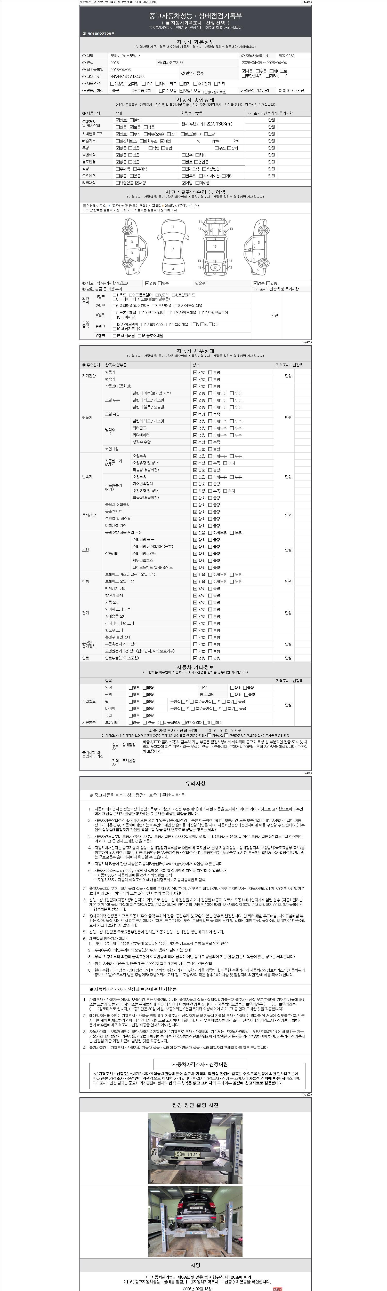 2. 차량 등록증이나 성능점검지 등을 상담자에게 요청및 확인하시고 사전에 미리 점검 하시기를 권유드립니다.