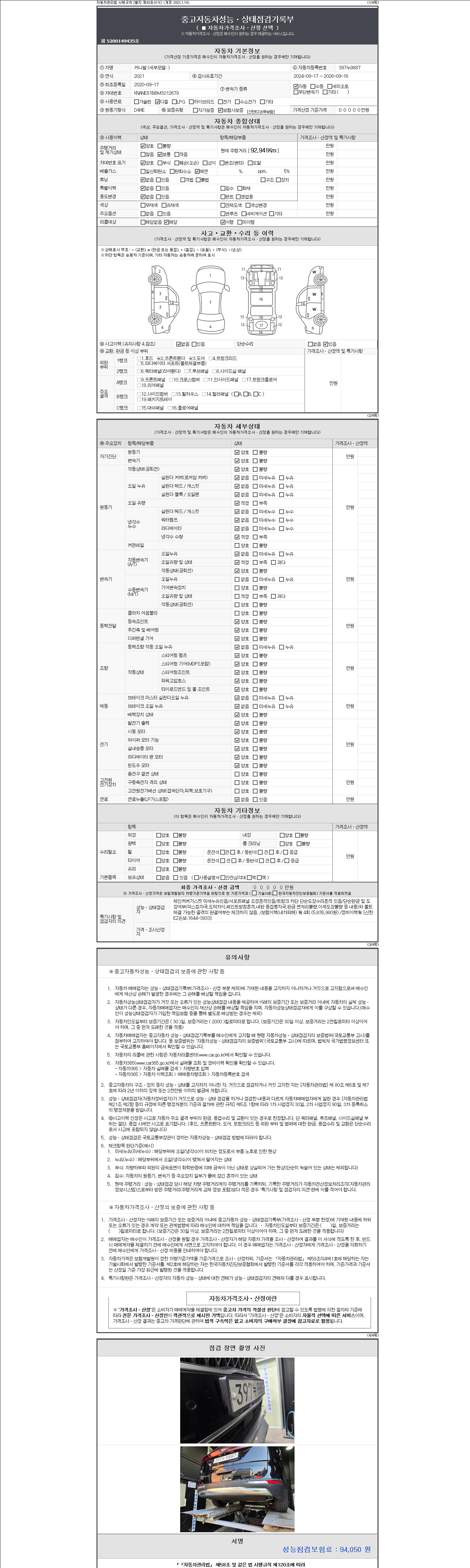 -중고자동차 매매업자를 통해 차량을 구입하실 경우 반드시 "중고자동차 성능, 상태점검 기록부"를 교뷰 받으셔야 하며, 매매업자는 반드시 의무 교부 하여야 압니다.