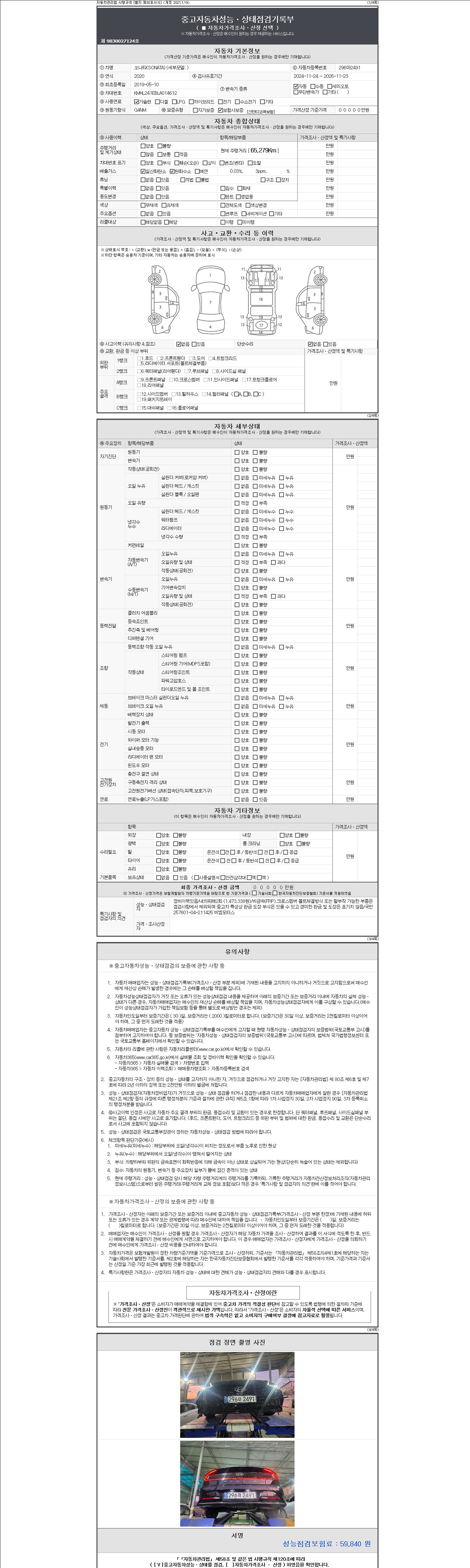 | 주행거리 | 65,279 km | 차량번호 | 296마2491 |