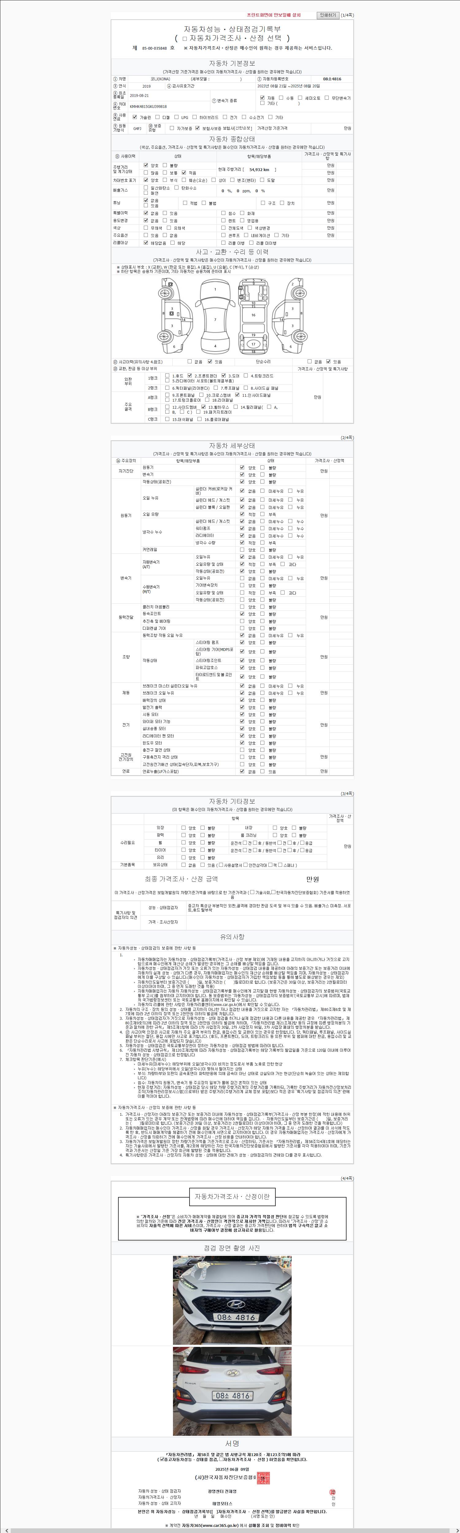 | 주행거리 | 54,890 km | 차량번호 | 08소4816 |