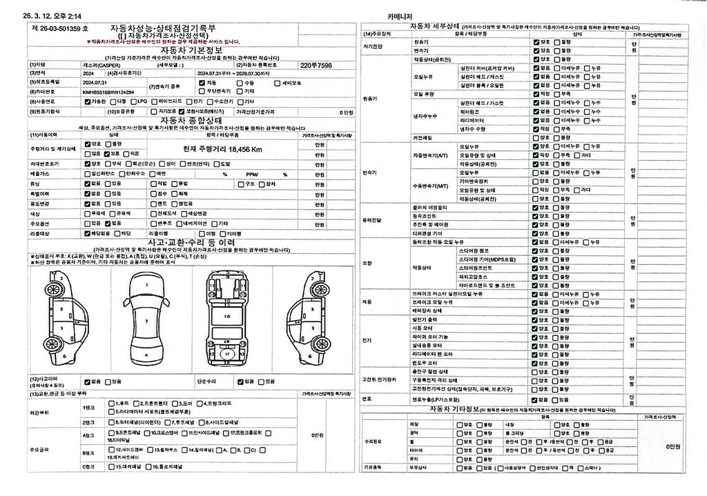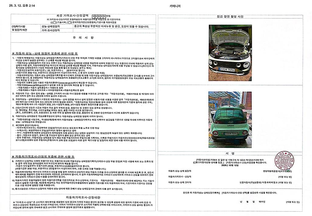 2. 차량 등록증이나 성능점검지 등을 상담자에게 요청및 확인하시고 사전에 미리 점검 하시기를 권유드립니다.
