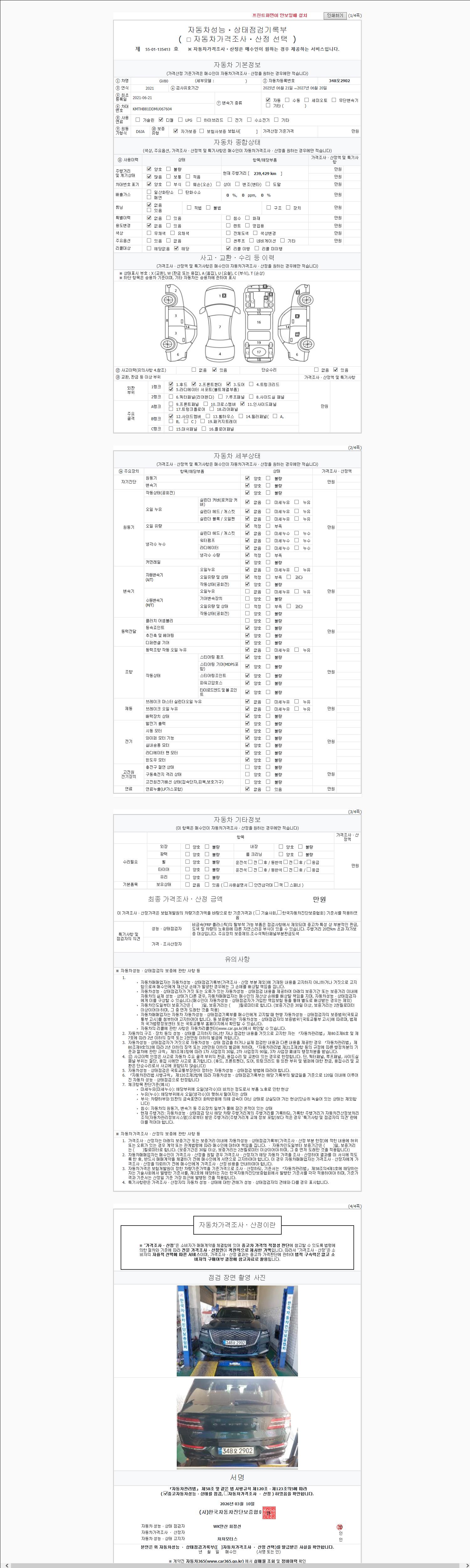 2. 차량 등록증이나 성능점검지 등을 상담자에게 요청및 확인하시고 사전에 미리 점검 하시기를 권유드립니다.