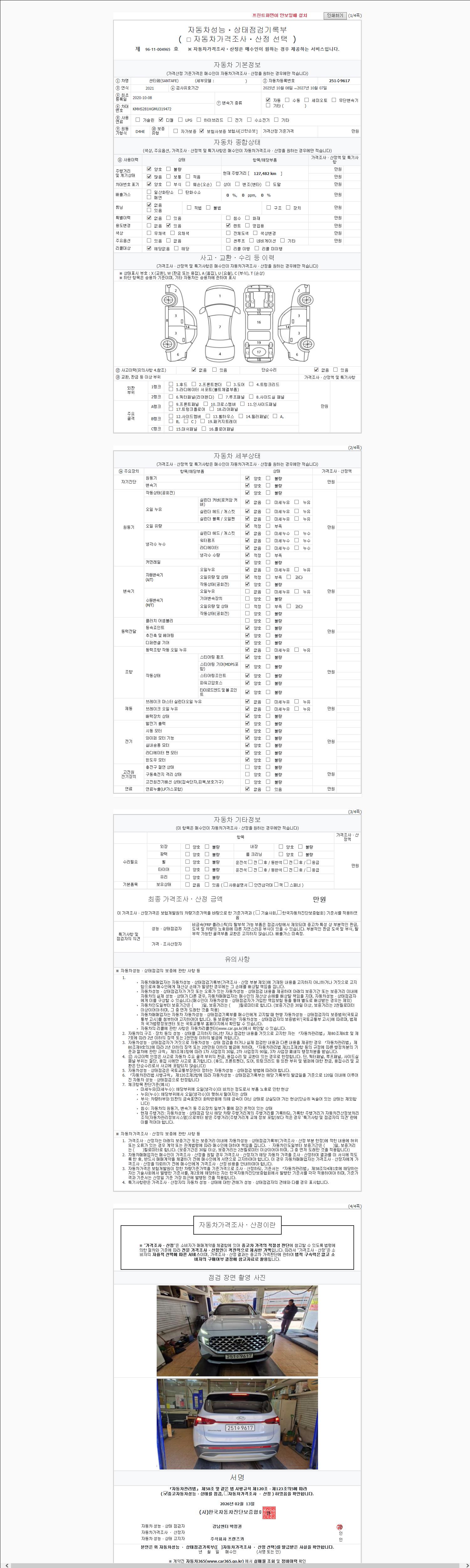 2. 차량 등록증이나 성능점검지 등을 상담자에게 요청및 확인하시고 사전에 미리 점검 하시기를 권유드립니다.