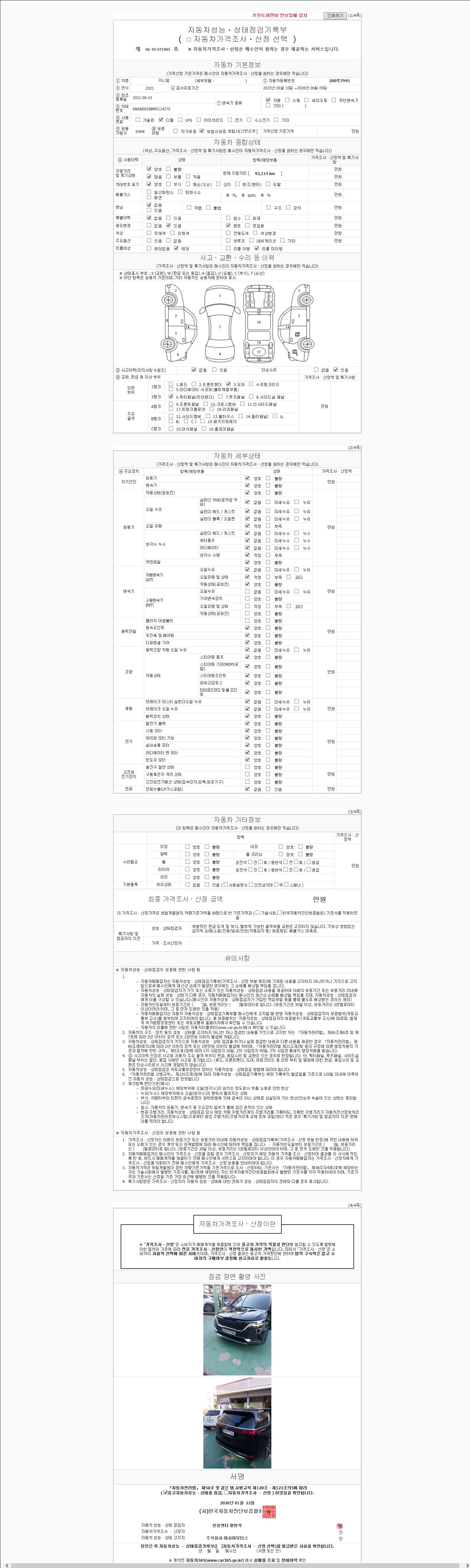 2. 차량 등록증이나 성능점검지 등을 상담자에게 요청및 확인하시고 사전에 미리 점검 하시기를 권유드립니다.
