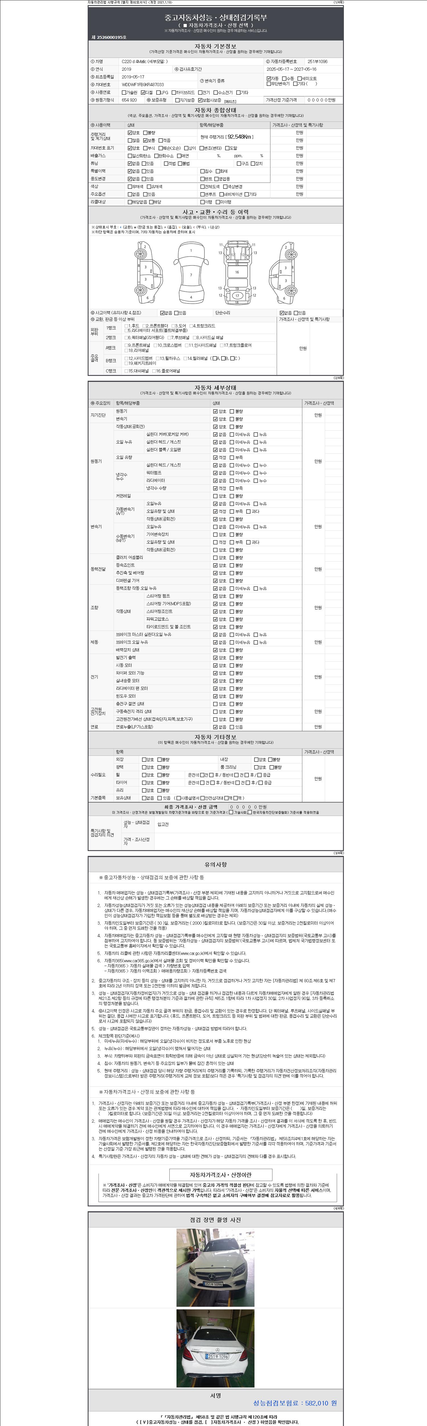 | 주행거리 | 92,548 km | 차량번호 | 251부1096 |