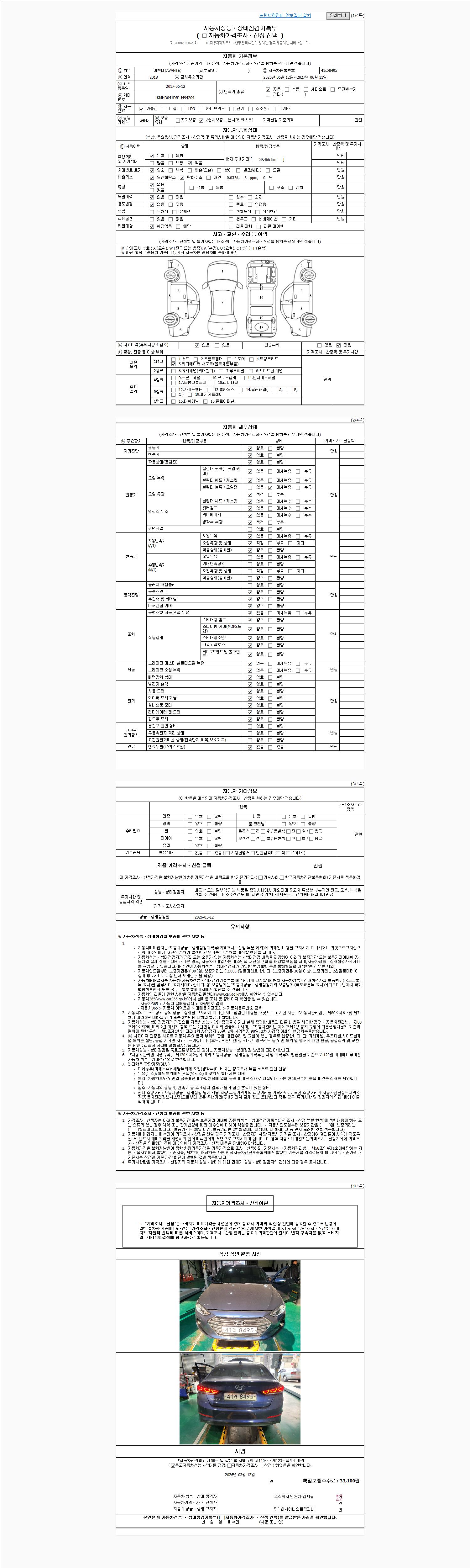 2. 차량 등록증이나 성능점검지 등을 상담자에게 요청및 확인하시고 사전에 미리 점검 하시기를 권유드립니다.