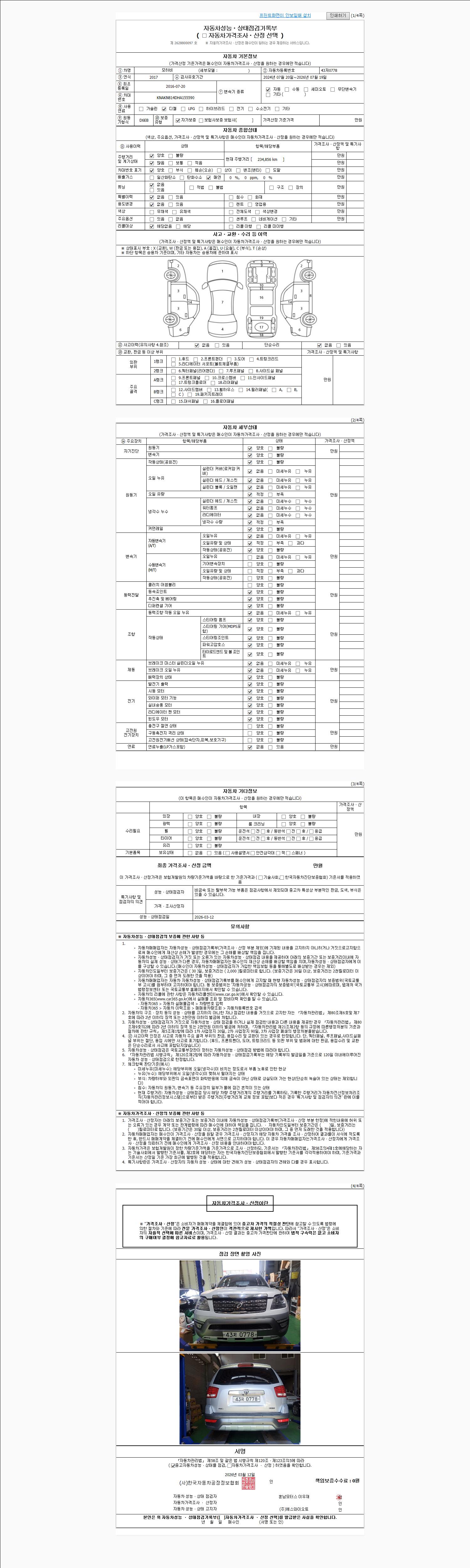 2. 차량 등록증이나 성능점검지 등을 상담자에게 요청및 확인하시고 사전에 미리 점검 하시기를 권유드립니다.