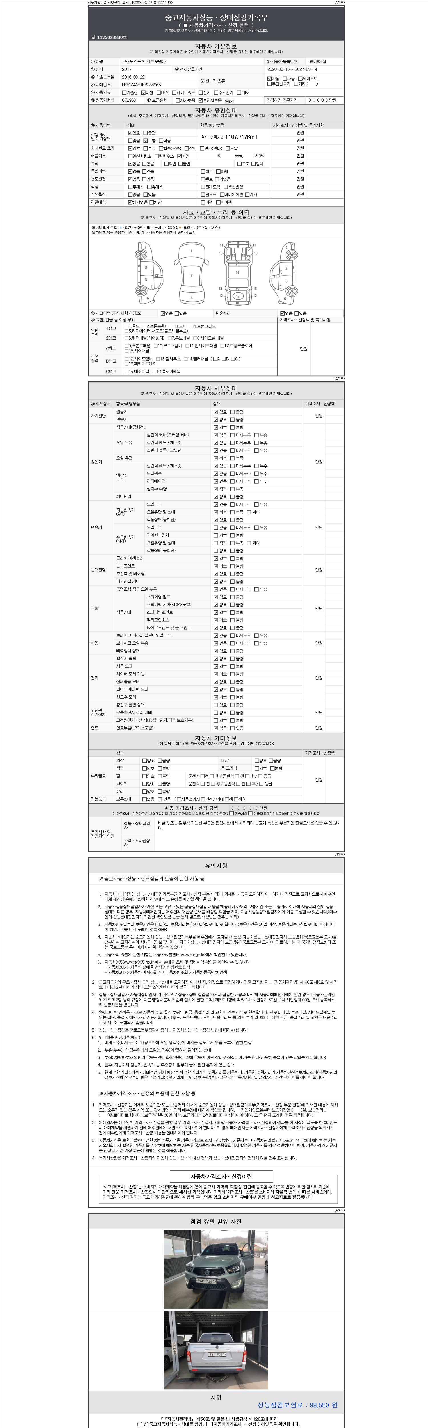 주행거리 107,717 km 차량번호 96버9364