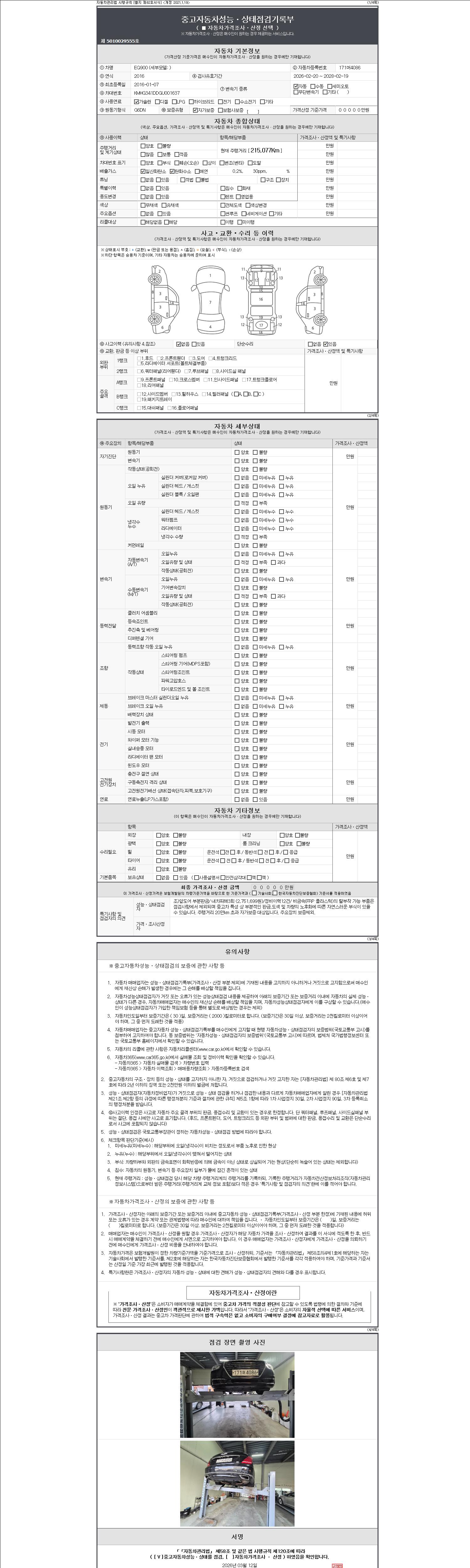 2. 차량 등록증이나 성능점검지 등을 상담자에게 요청및 확인하시고 사전에 미리 점검 하시기를 권유드립니다.