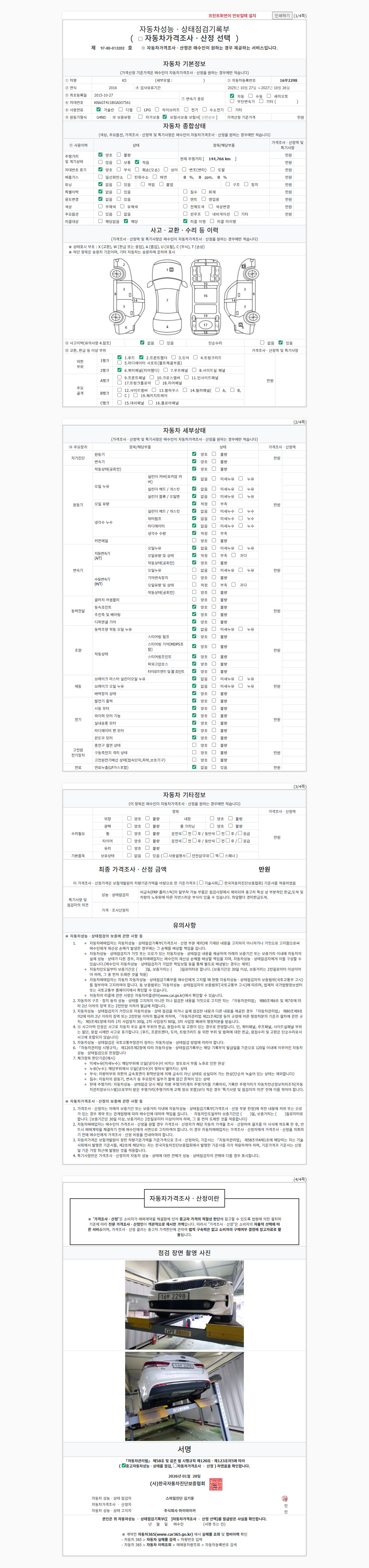 사고유무 성능기록부 참조 제시번호 제 2026012145 호