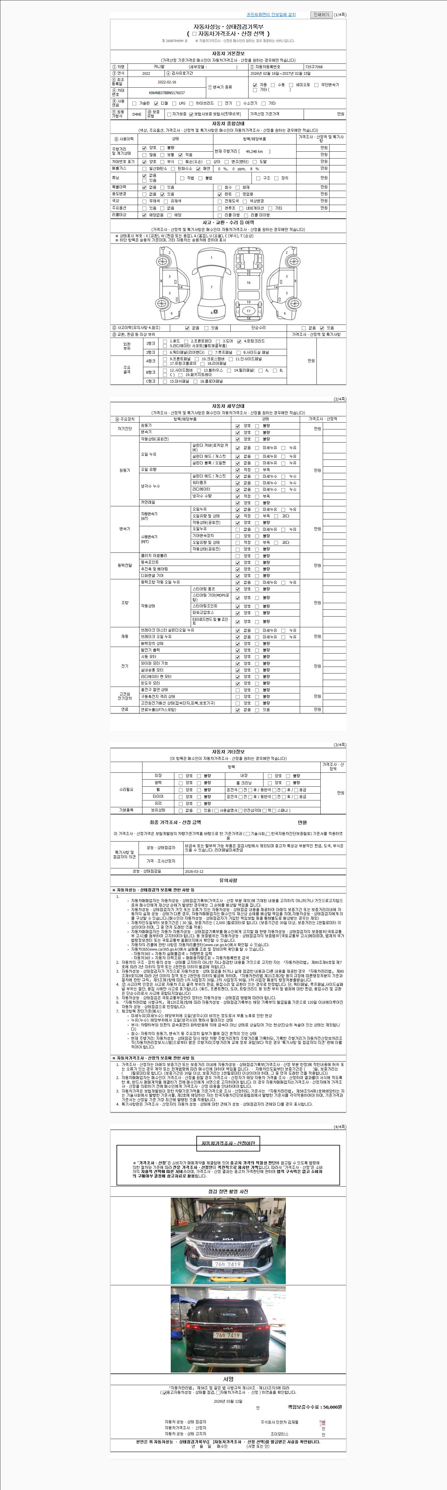 2. 차량 등록증이나 성능점검지 등을 상담자에게 요청및 확인하시고 사전에 미리 점검 하시기를 권유드립니다.