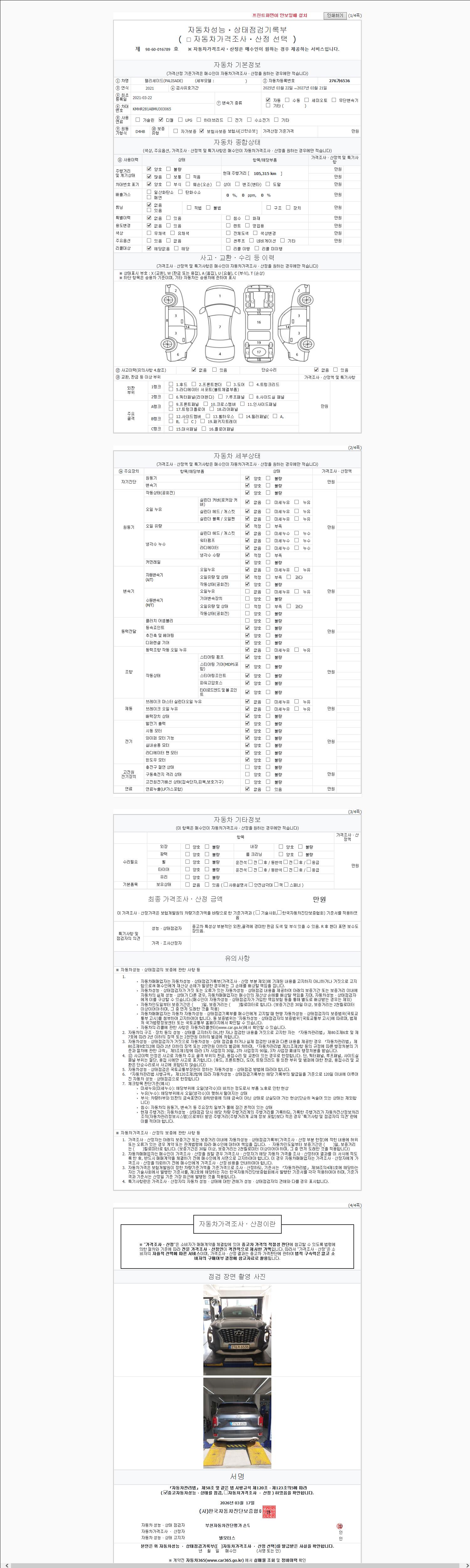 2. 차량 등록증이나 성능점검지 등을 상담자에게 요청및 확인하시고 사전에 미리 점검 하시기를 권유드립니다.