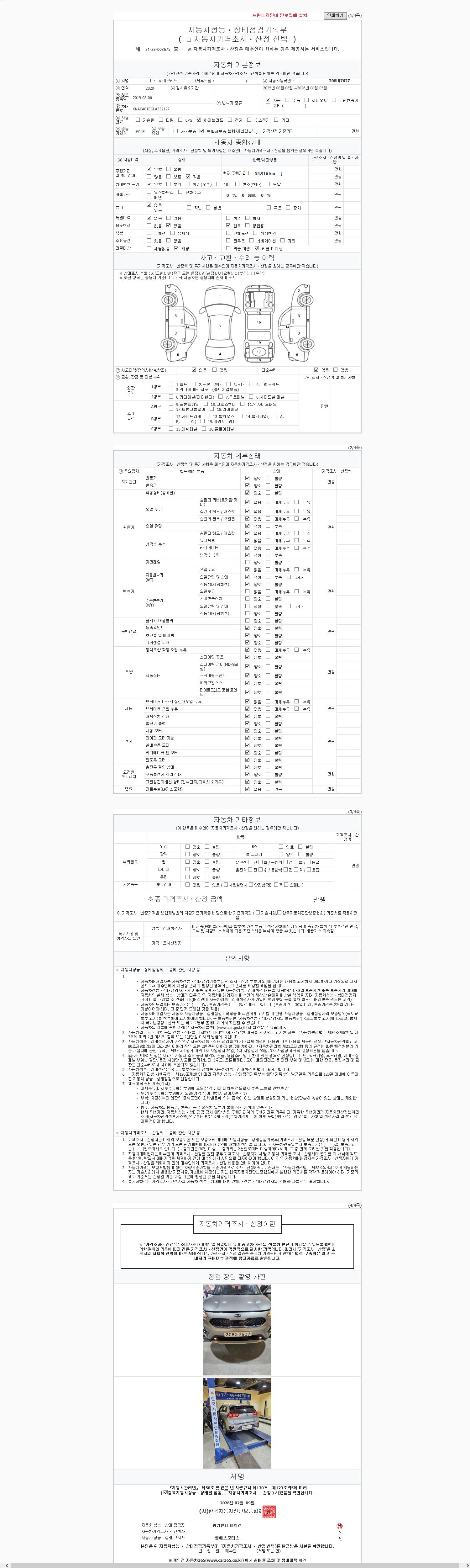 오토|휘발유 하이브리드|2019년 8월|55,887 km 308마7627| cc|회색 |