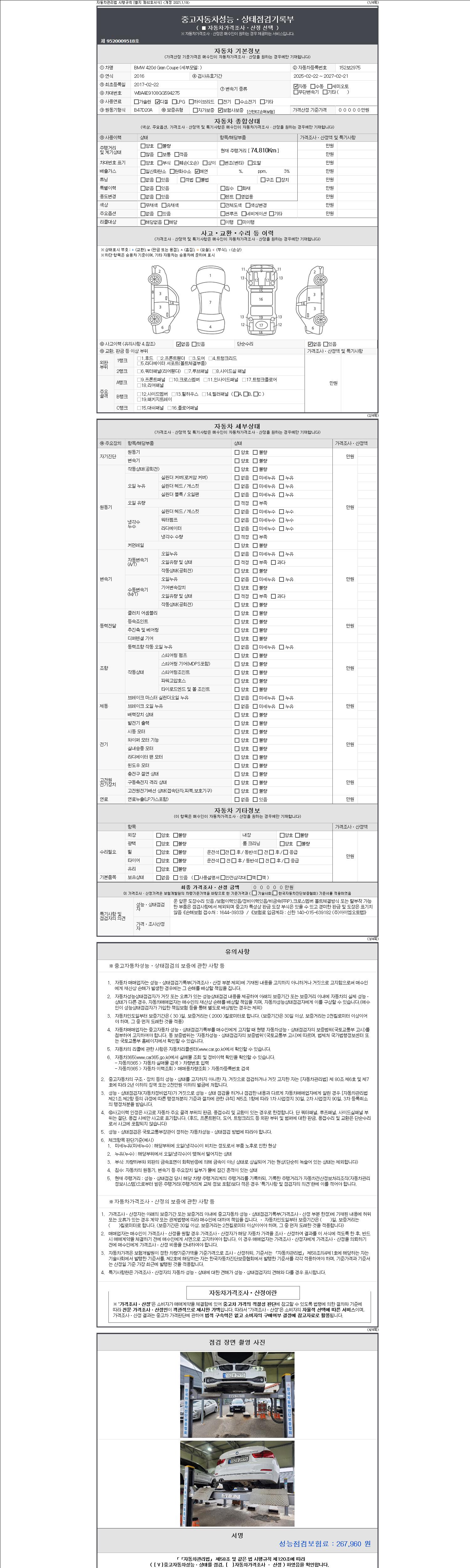 2. 차량 등록증이나 성능점검지 등을 상담자에게 요청및 확인하시고 사전에 미리 점검 하시기를 권유드립니다.