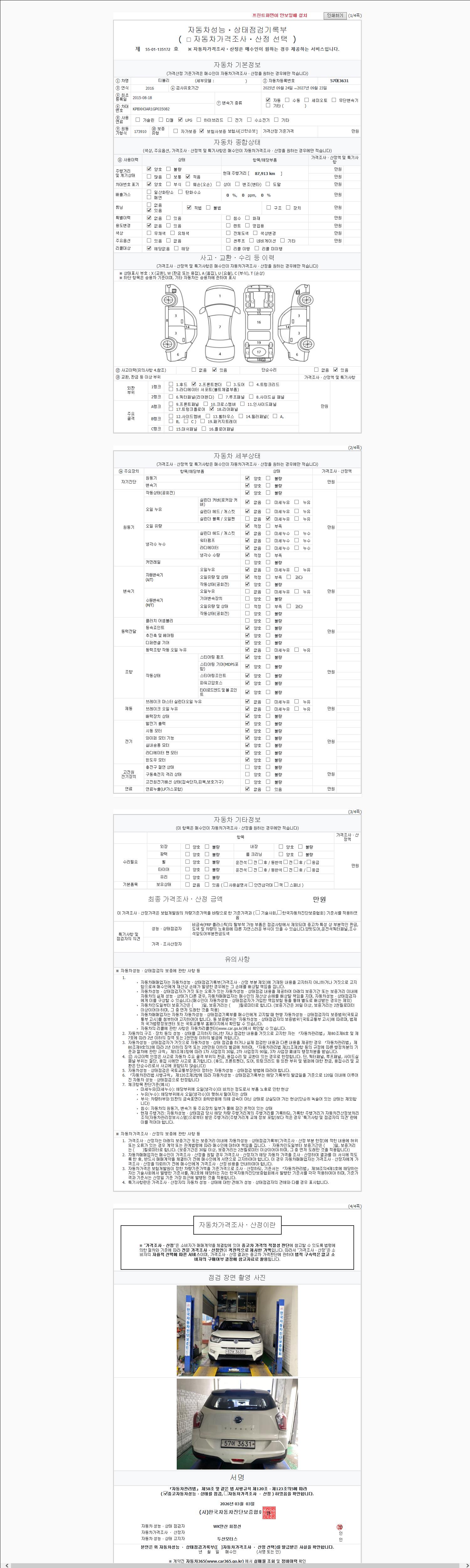 2. 차량 등록증이나 성능점검지 등을 상담자에게 요청및 확인하시고 사전에 미리 점검 하시기를 권유드립니다.