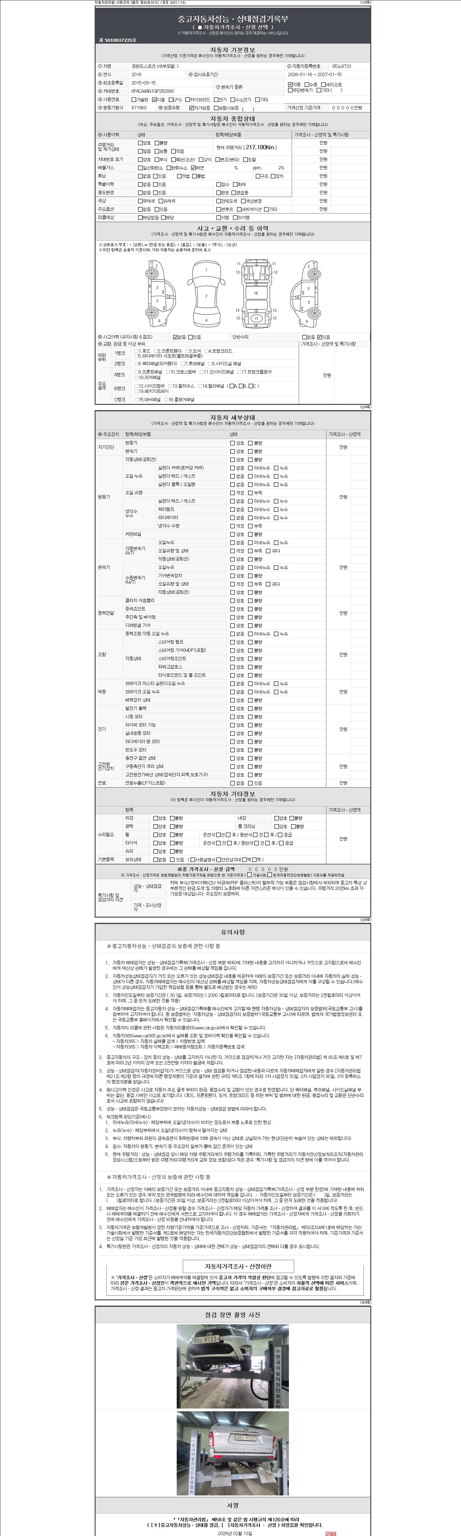 2. 차량 등록증이나 성능점검지 등을 상담자에게 요청및 확인하시고 사전에 미리 점검 하시기를 권유드립니다.