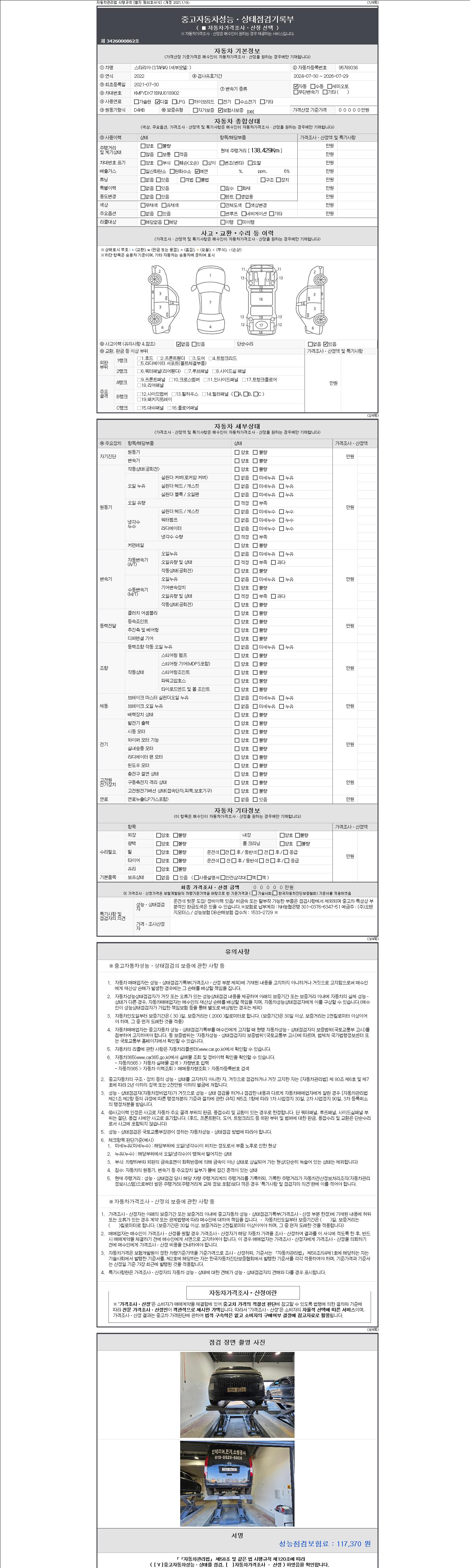 2. 차량 등록증이나 성능점검지 등을 상담자에게 요청및 확인하시고 사전에 미리 점검 하시기를 권유드립니다.