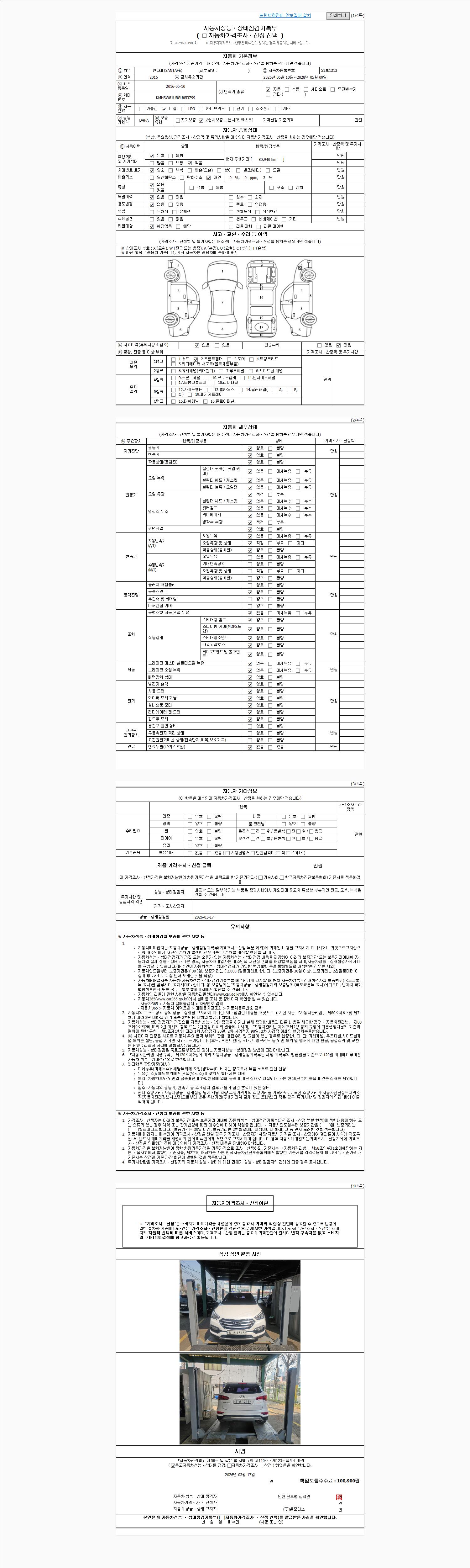 2. 차량 등록증이나 성능점검지 등을 상담자에게 요청및 확인하시고 사전에 미리 점검 하시기를 권유드립니다.