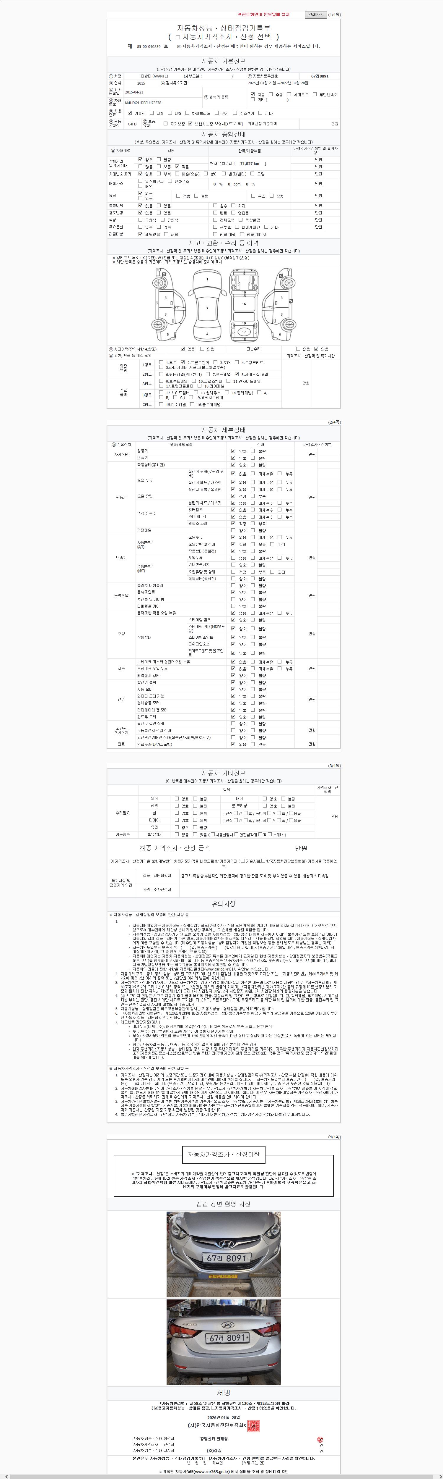 | 주행거리 | 71,027 km | 차량번호 | 67러8091 |