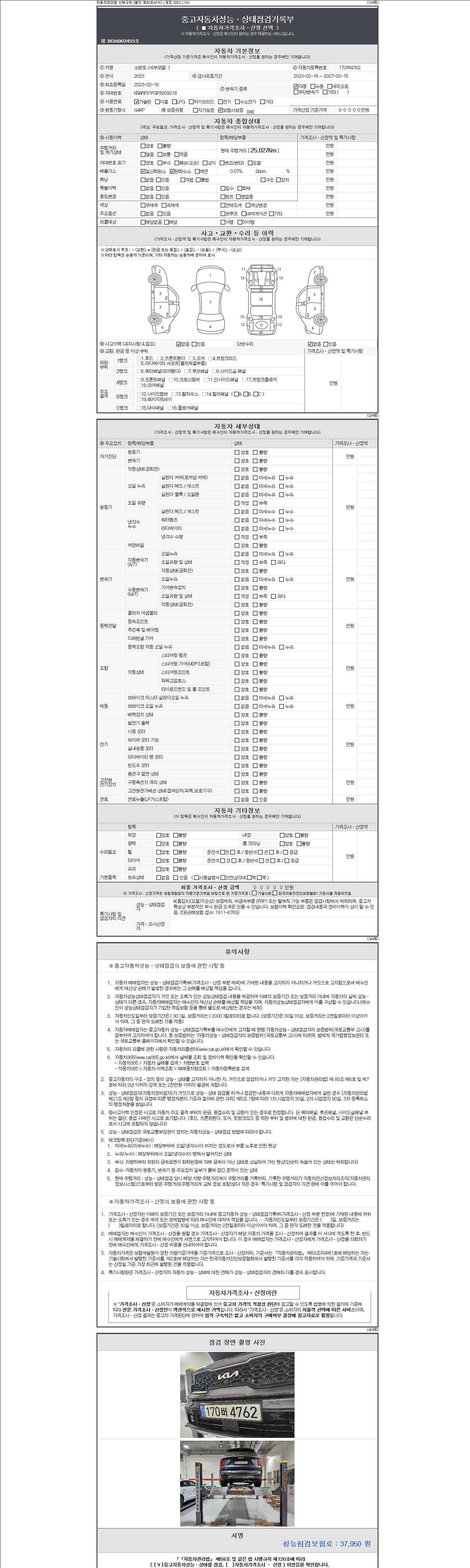2. 차량 등록증이나 성능점검지 등을 상담자에게 요청및 확인하시고 사전에 미리 점검 하시기를 권유드립니다.