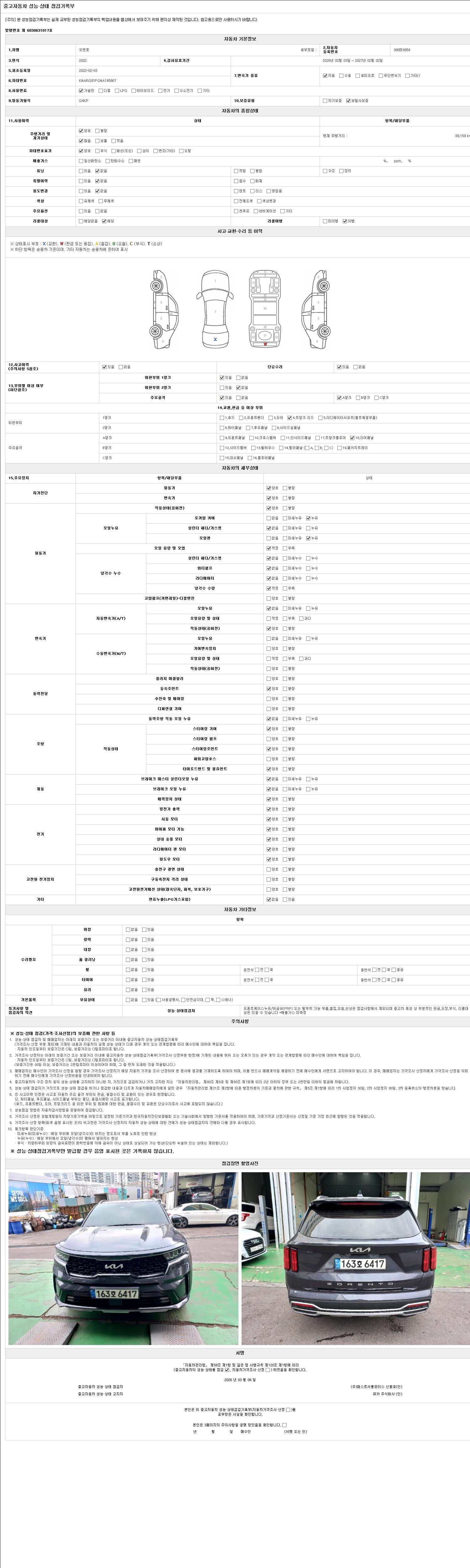 2. 차량 등록증이나 성능점검지 등을 상담자에게 요청및 확인하시고 사전에 미리 점검 하시기를 권유드립니다.