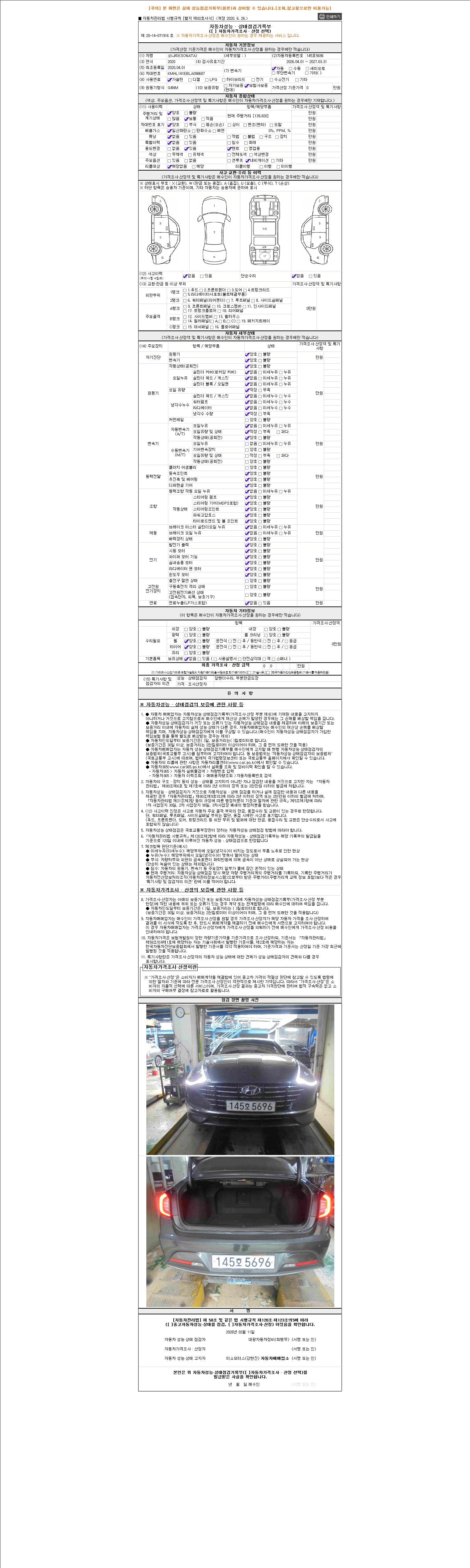 2. 차량 등록증이나 성능점검지 등을 상담자에게 요청및 확인하시고 사전에 미리 점검 하시기를 권유드립니다.