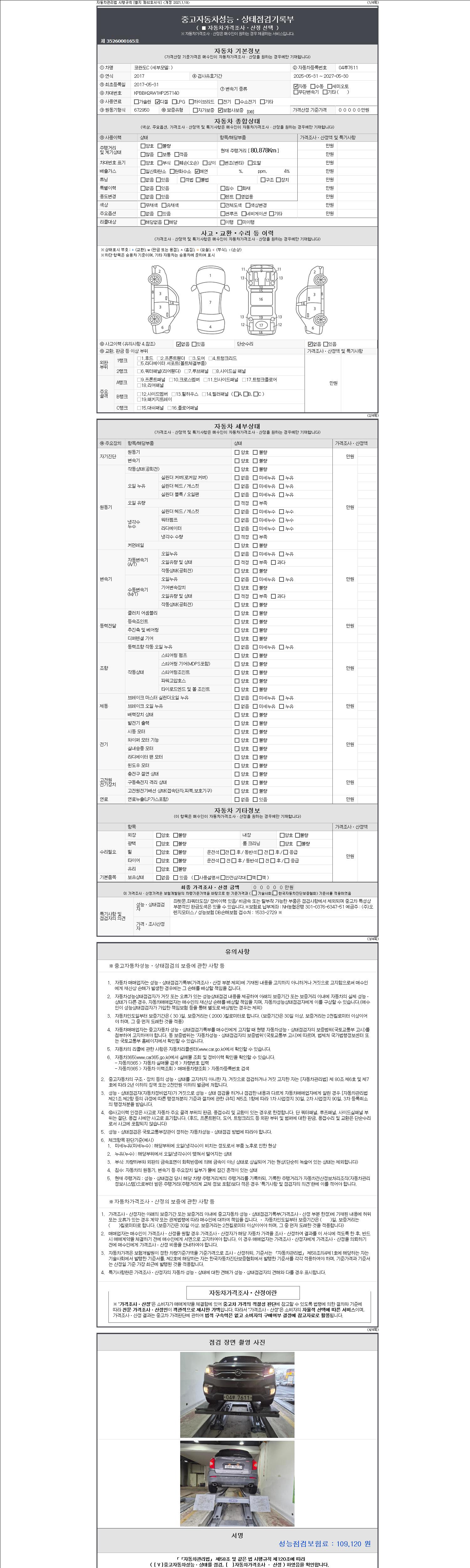 2. 차량 등록증이나 성능점검지 등을 상담자에게 요청및 확인하시고 사전에 미리 점검 하시기를 권유드립니다.