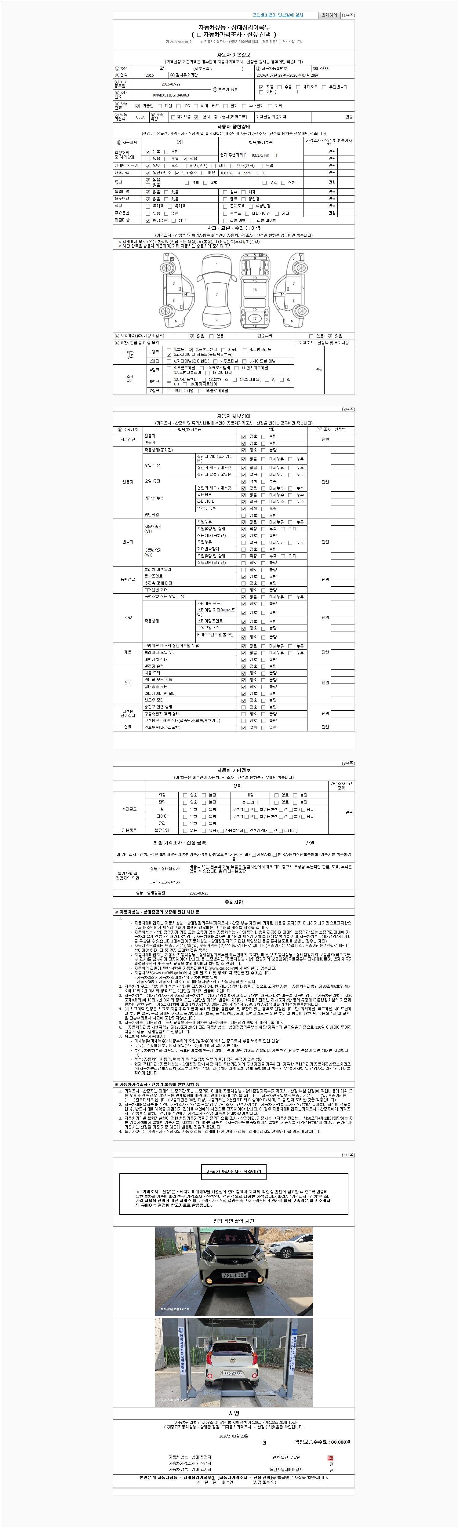 2. 차량 등록증이나 성능점검지 등을 상담자에게 요청및 확인하시고 사전에 미리 점검 하시기를 권유드립니다.