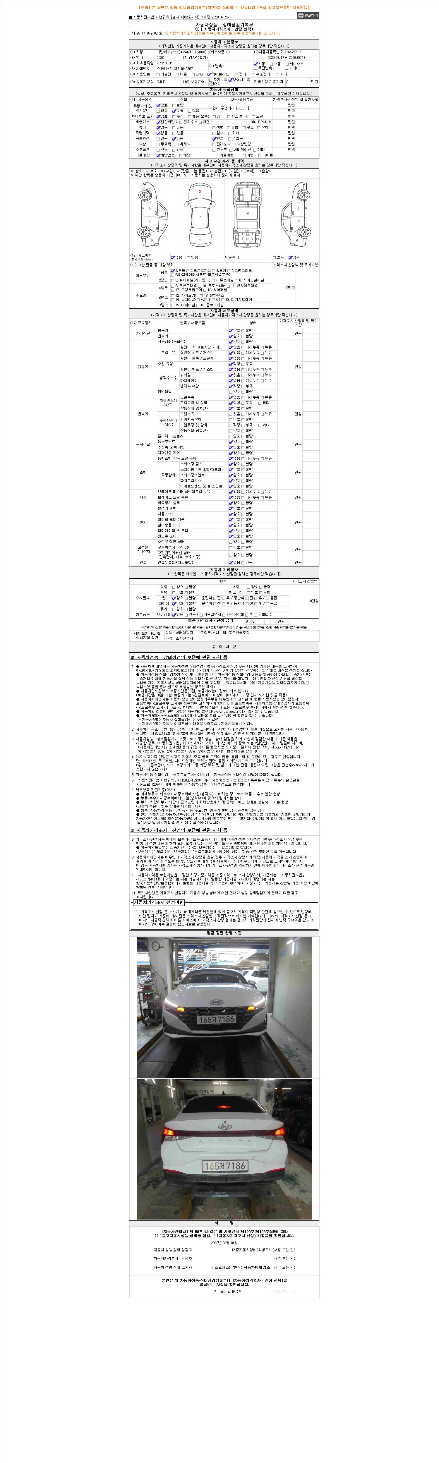 2. 차량 등록증이나 성능점검지 등을 상담자에게 요청및 확인하시고 사전에 미리 점검 하시기를 권유드립니다.