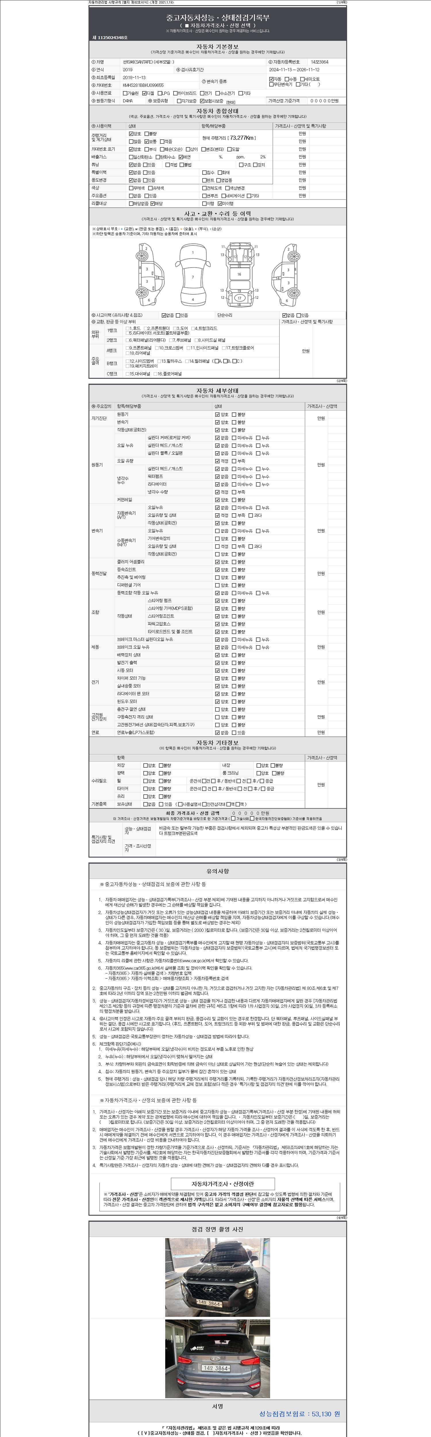 -중고자동차 매매업자를 통해 차량을 구입하실 경우 반드시 "중고자동차 성능, 상태점검 기록부"를 교뷰 받으셔야 하며, 매매업자는 반드시 의무 교부 하여야 압니다.