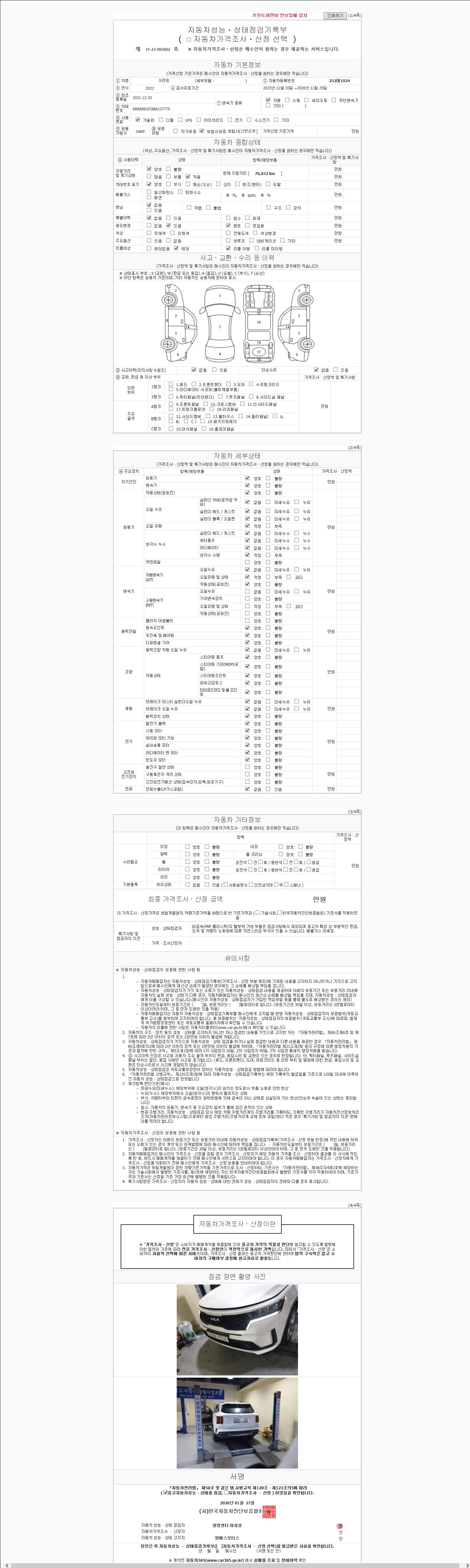 2. 차량 등록증이나 성능점검지 등을 상담자에게 요청및 확인하시고 사전에 미리 점검 하시기를 권유드립니다.