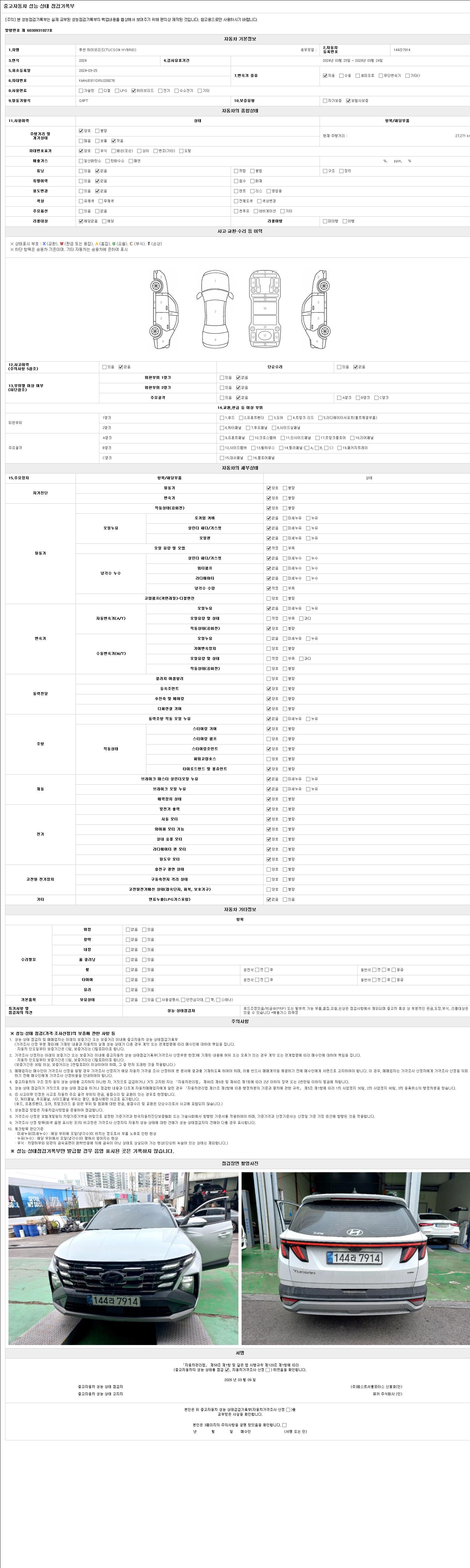 주행거리 27,271 km 차량번호 144라7914