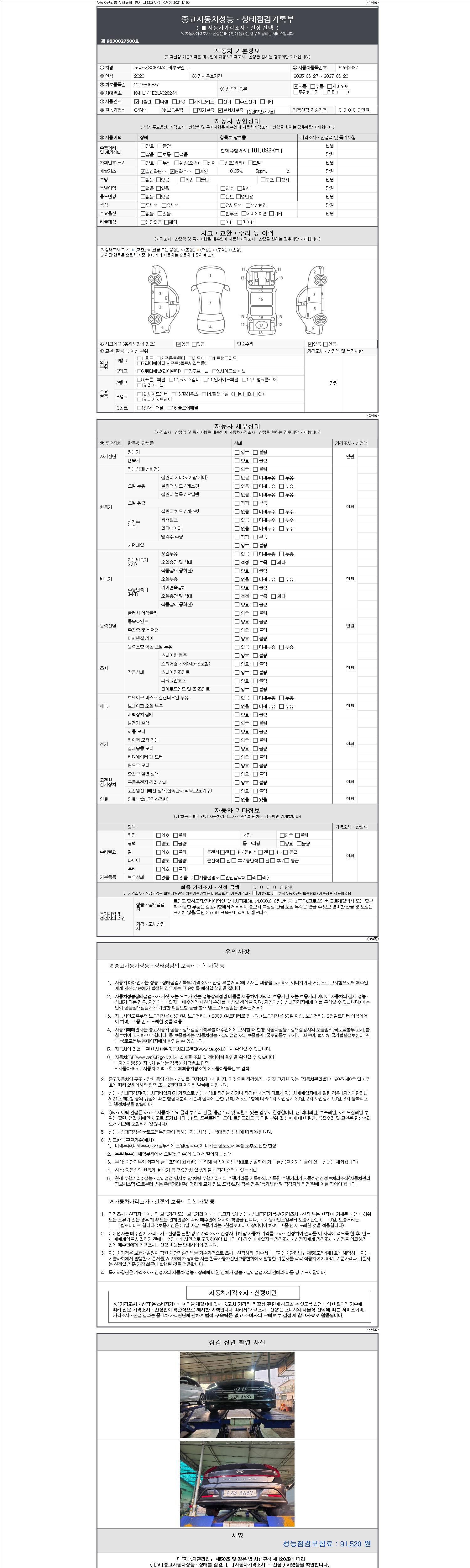 3. 차량의 이미지중 차량번호가 의도적으로 가공, 편집 된 경우나 지나치게 가격이 낮을 경우 더욱 세심한 주위를 요구합니다.